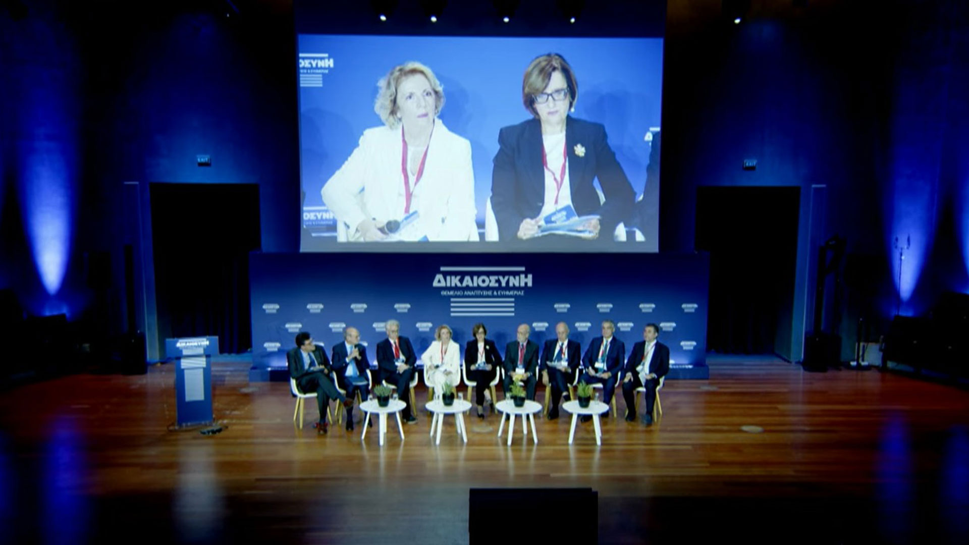 Η συζήτηση με θέμα «Η Εμπιστοσύνη ως Νέο Κεφάλαιο Ανάπτυξης & Ευημερίας – Πώς κράτος, δικαστές, επιχειρήσεις, νομικοί και πανεπιστήμια θα δουλέψουμε για την ενίσχυση της ασφάλειας δικαίου» πραγματοποιείται στο πλαίσιο του Συνεδρίου «Δικαιοσύνη: Θεμέλιο ανάπτυξης και Ευημερίας».