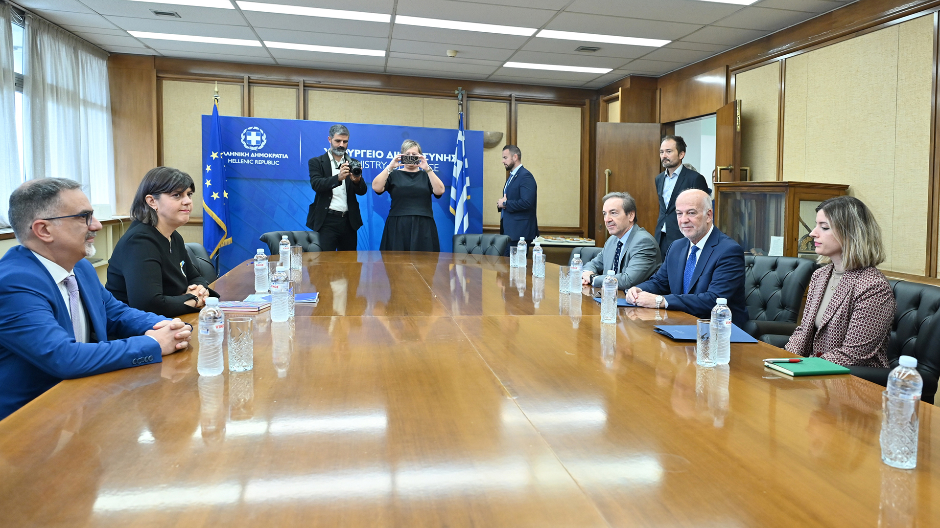 Σύντομη συνάντηση είχε η επικεφαλής της Ευρωπαϊκής Εισαγγελίας, Λάουρα Κοβέσι, με τον υπουργό Δικαιοσύνης, Γιώργο Φλωρίδη, και τον υφυπουργό Δικαιοσύνης, Ιωάννη Μπούγα.