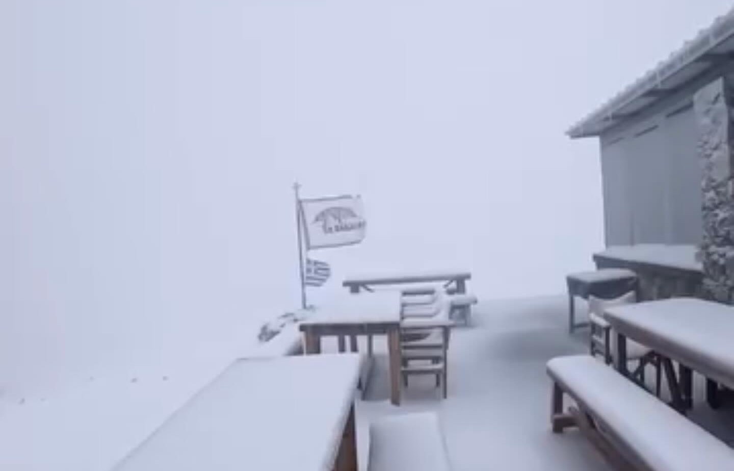 H απότομη αλλαγή του καιρού, τις τελευταίες ώρες, έφερε τα πρώτα χιόνια της χρονιάς στον Ολυμπο.