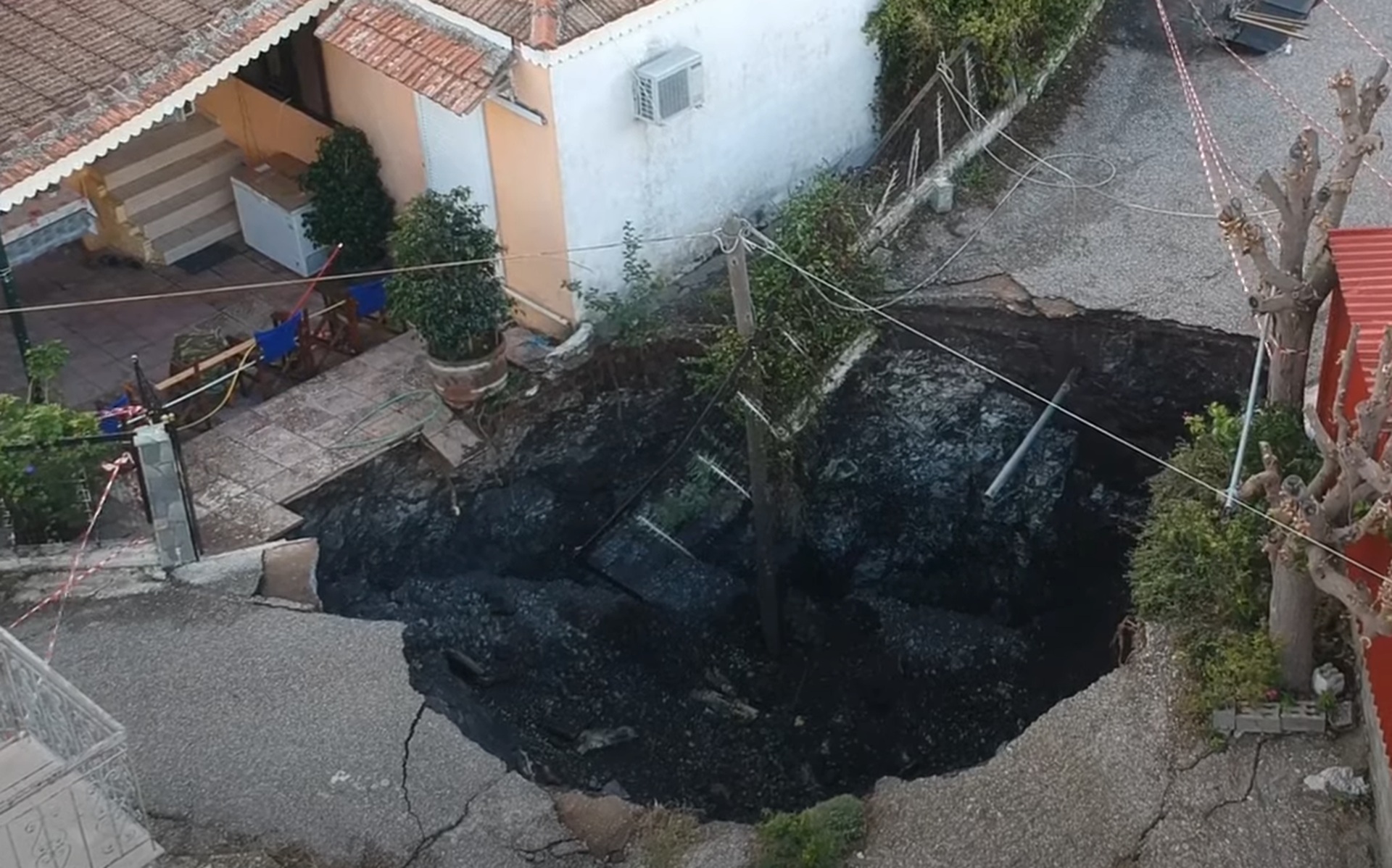 Η επικίνδυνη καθίζηση του εδάφους προκάλεσε τον κρατήρα βάθους 6 μέτρων, με τις Αρχές να αποκλείουν το σημείο και τους κατοίκους των παρακείμενων σπιτιών να τα εγκαταλείπουν.