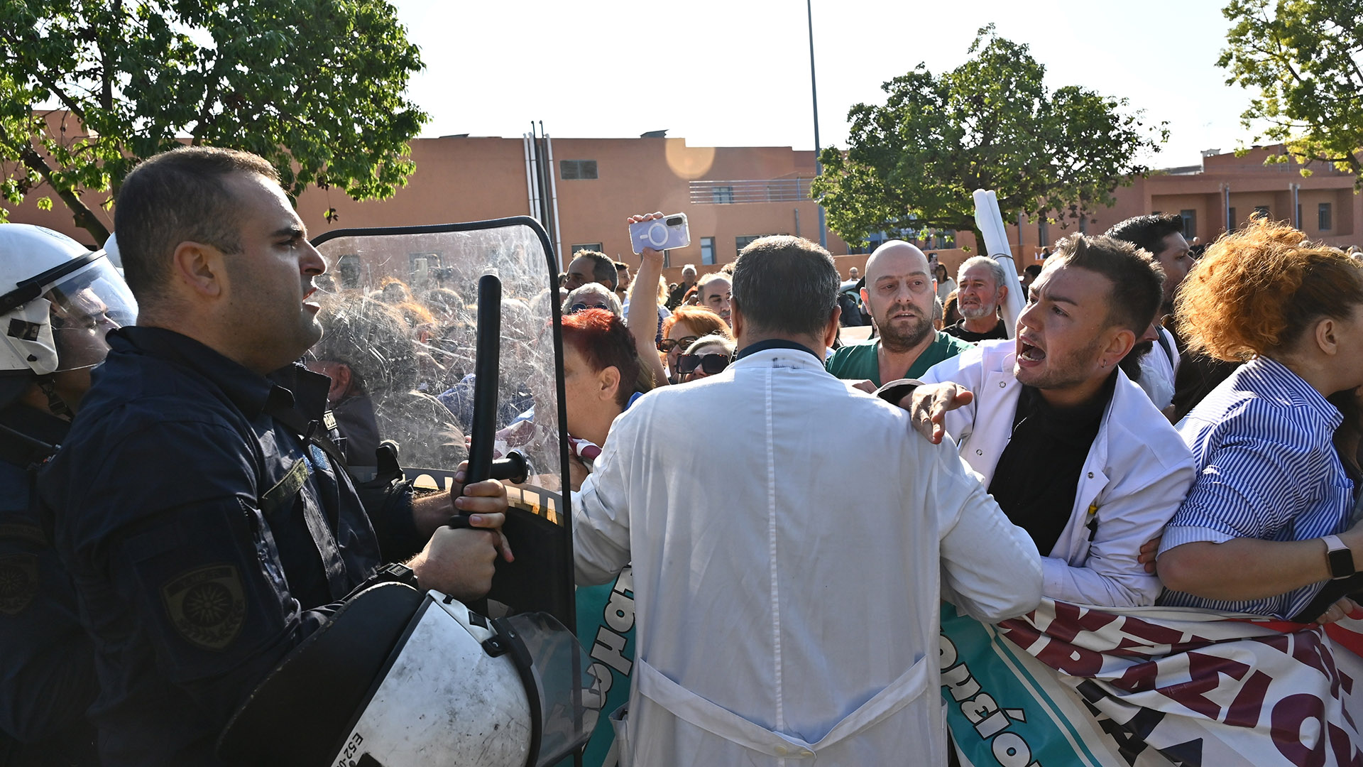 Οι εργαζόμενοι στο νοσοκομείο είχαν συγκεντρωθεί για να διαμαρτυρηθούν για την κατάσταση στο δημόσιο σύστημα υγείας, ενώ στο σημείο βρίσκονταν αστυνομικές δυνάμεις. Ανάμεσα στις δύο πλευρές σημειώθηκαν επεισόδια έξω από το νοσοκομείο.