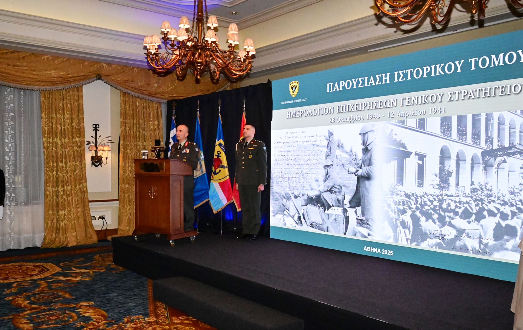 Eνα σημαντικό ιστορικό έργο βασισμένο στο πολύτιμο ιστορικό αρχείο της Διεύθυνσης Ιστορίας Στρατού (ΔΙΣ), με τίτλο «Ημερολόγιο Επιχειρήσεων Γενικού Στρατηγείου 1940-41», παρουσιάστηκε χθες σε εκδήλωση που διοργάνωσε το Γενικό Επιτελείο Στρατού (ΓΕΣ) στο ξενοδοχείο «Μεγάλη Βρεταννία». Την εκδήλωση, στην οποία παρέστη και απηύθυνε σύντομο χαιρετισμό ο υπουργός Εθνικής Aμυνας Νίκος Δένδιας, προλόγισε ο αρχηγός ΓΕΣ Γιώργος Κωστίδης. Βασικοί ομιλητές ήταν ο δρ Ιωάννης Παπαφλωράτος, ο οποίος παρουσίασε θέμα με τίτλο «Ιστορικό πλαίσιο και τα πρόσωπα που διαδραμάτισαν κομβικό ρόλο την εν λόγω περίοδο», ο διοικητής της Στρατιωτικής Σχολής Ευελπίδων Αναστάσιος Πολύχρονος, που μίλησε για το τακτικό πλαίσιο μέσα στο οποίο έλαβαν χώρα οι πολεμικές επιχειρήσεις του 1940-41, ενώ ο διευθυντής της ΔΙΣ, Κομήτης Δοξάκης, αναφέρθηκε στον επιστημονικό τρόπο καταγραφής του αρχειακού υλικού. Το πάνελ των ομιλητών συντόνισε ο διευθυντής της «Κ» Αλέξης Παπαχελάς.