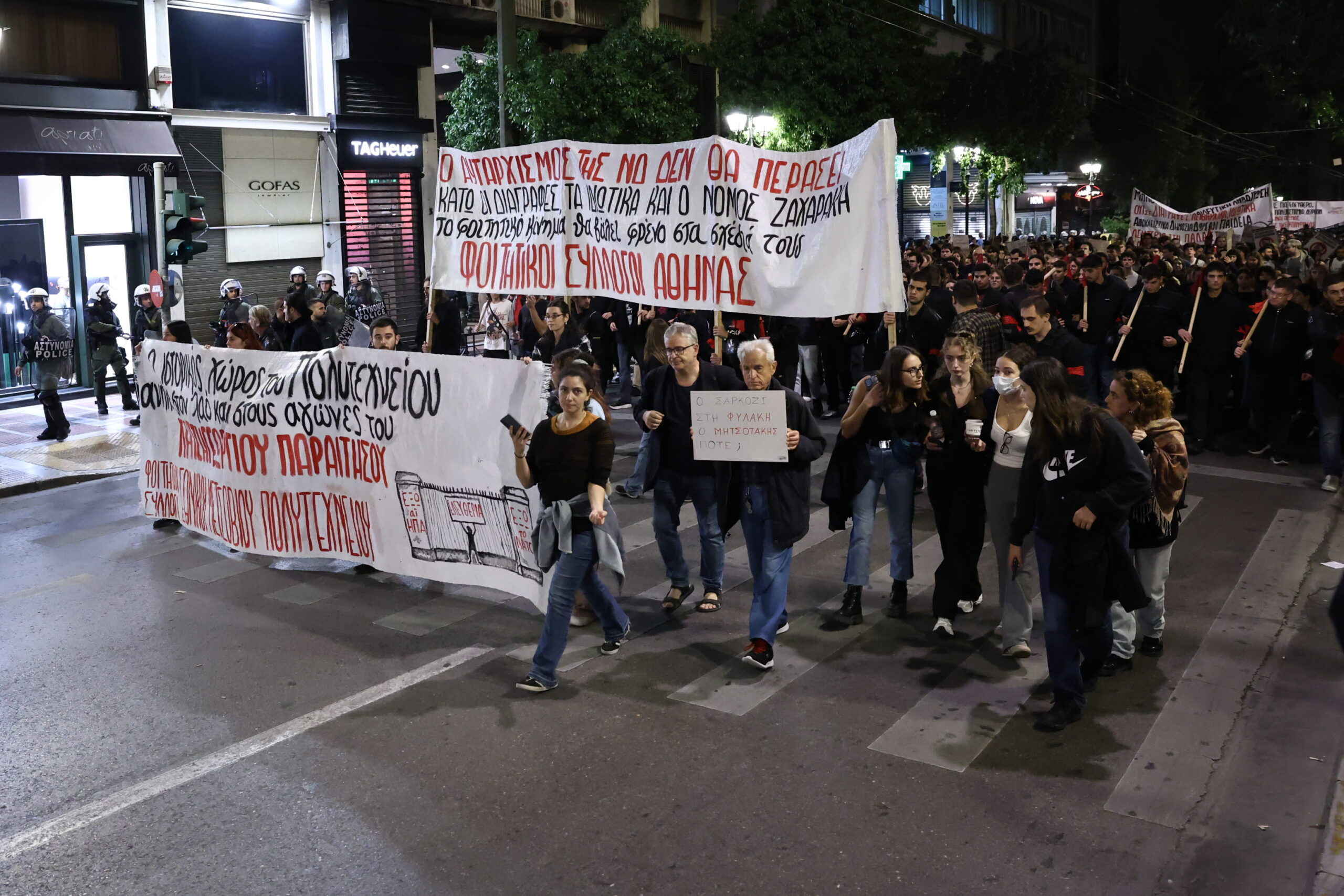 Φοιτητική πορεία πραγματοποιήθηκε το απόγευμα της Πέμπτης στο κέντρο της Αθήνας, με τους συγκεντρωμένους να εκφράζουν την αντίθεσή τους στα ιδιωτικά πανεπιστήμια.
