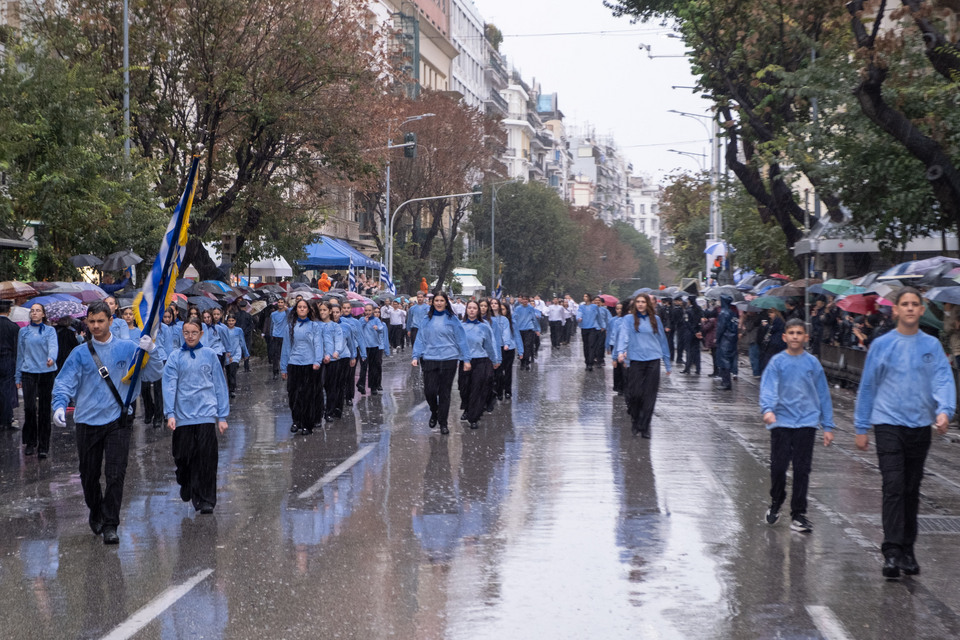 Υπό βροχή τίμησαν οι μαθητές και οι μαθήτριες της Θεσσαλονίκης την 28η Οκτωβρίου.