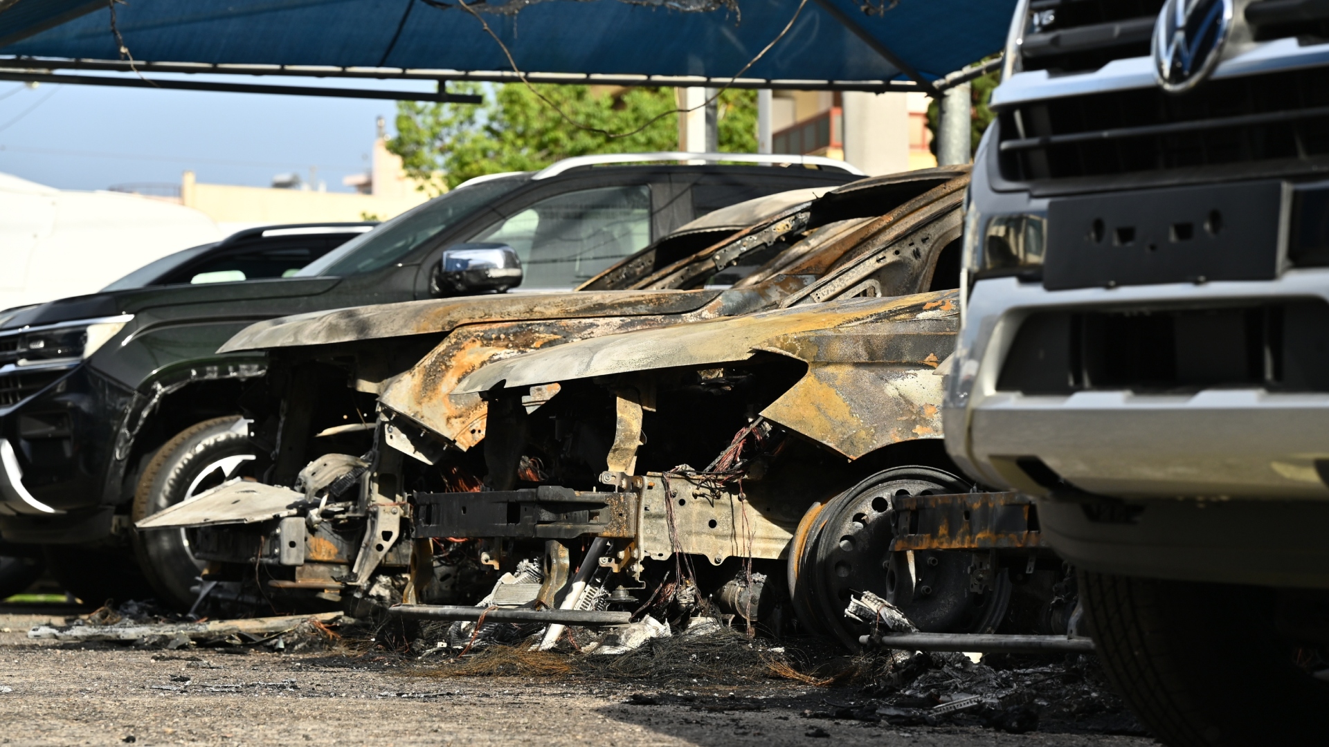Συνολικά, κάηκαν δέκα οχήματα.