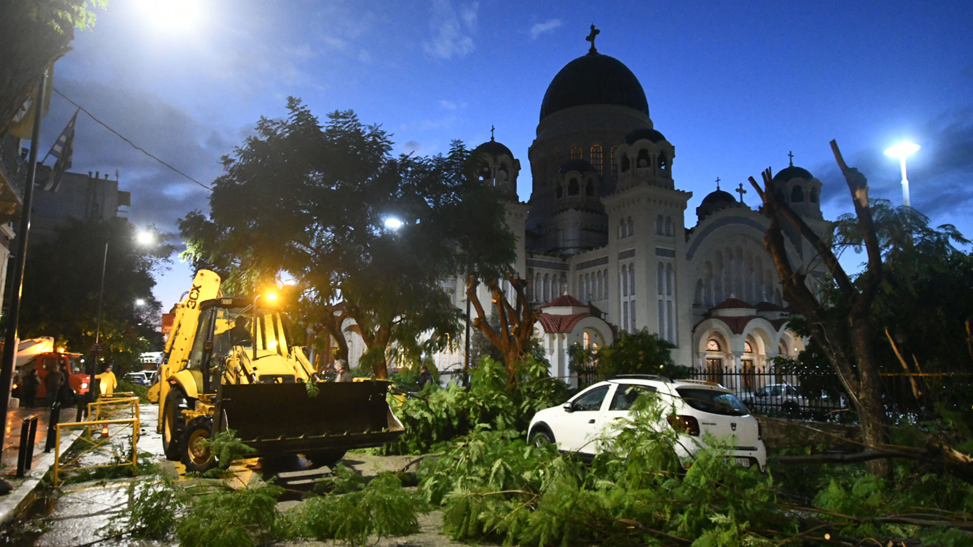 Συγκεκριμένα, λόγω των ισχυρών ανέμων, που συνοδεύονταν από καταιγίδα, έπεσαν δέντρα έξω από τον περίβολο του ιερού ναού του Αγίου Ανδρέα, στην οδό Ευμήλου, με αποτέλεσμα να προκληθούν ζημιές σε σταθμευμένα αυτοκίνητα.