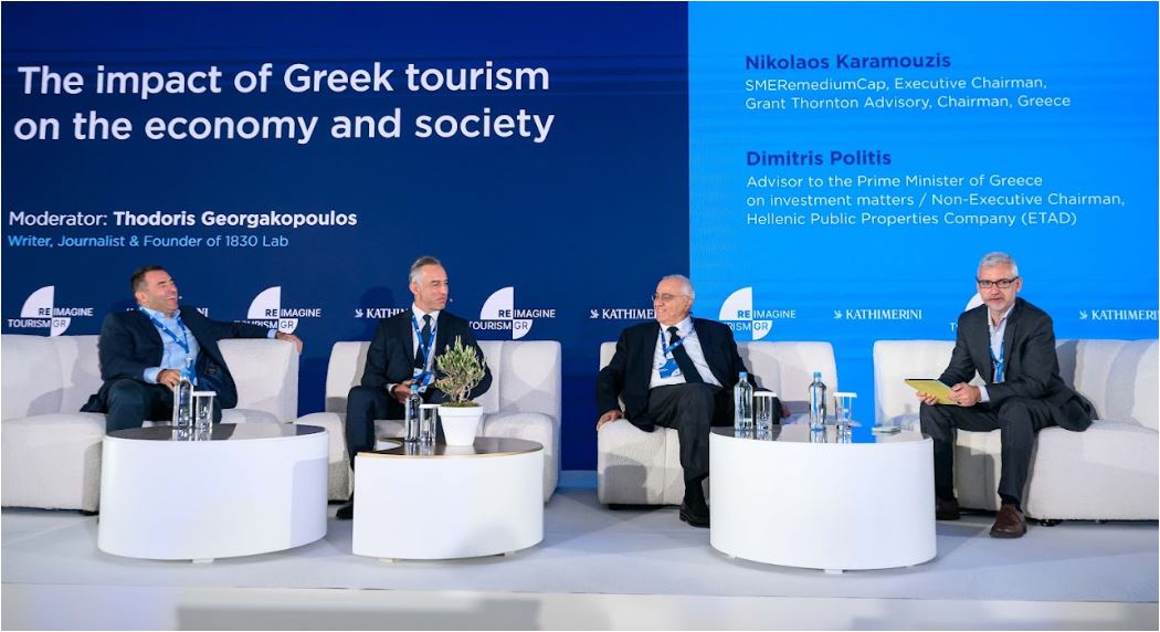 Στη συζήτηση που αναπτύχθηκε στο πλαίσιο του συνεδρίου «REIMAGINE TOURISM 2025», που διοργάνωσε η ΚΑΘΗΜΕΡΙΝΗ στο Κέντρο Πολιτισμού Ίδρυμα Σταύρος Νιάρχος και τη συντόνισε ο δημοσιογράφος και συγγραφέας Θοδωρής Γεωργακόπουλος, συμμετείχαν οι Λεωνίδας Παπαϊωάννου, Pertner Government & public Sector RwC Greece, Νίκος Καραμούζης, πρόεδρος του Επενδυτικού Ταμείου SMERC και Δημήτρης Πολίτης, συνεργάτης του πρωθυπουργού σε θέματα επενδύσεων και μη εκτελεστικός πρόεδρος της ΕΤΑΔ.