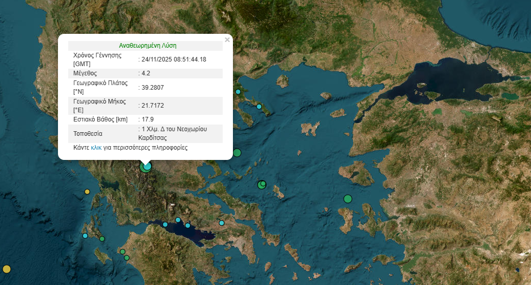 Ισχυρός σεισμός σημειώθηκε λίγο πριν από τις 11.00 το πρωί στην Καρδίτσα.