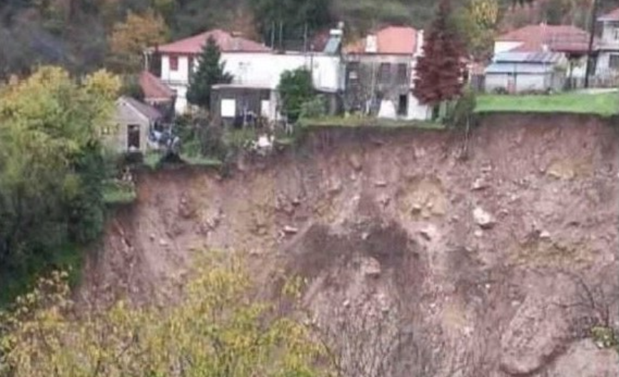 Οπως φαίνεται στη φωτογραφία που ανήρτησε στο Facebook ο περιφερειάρχης Ηπείρου, Αλ. Καχριμάνης, μεγάλο τμήμα του εδάφους έχει υποχωρήσει, δημιουργώντας μια εκτεταμένη κατακρήμνιση λίγα μόλις μέτρα κάτω από κατοικίες της περιοχής.