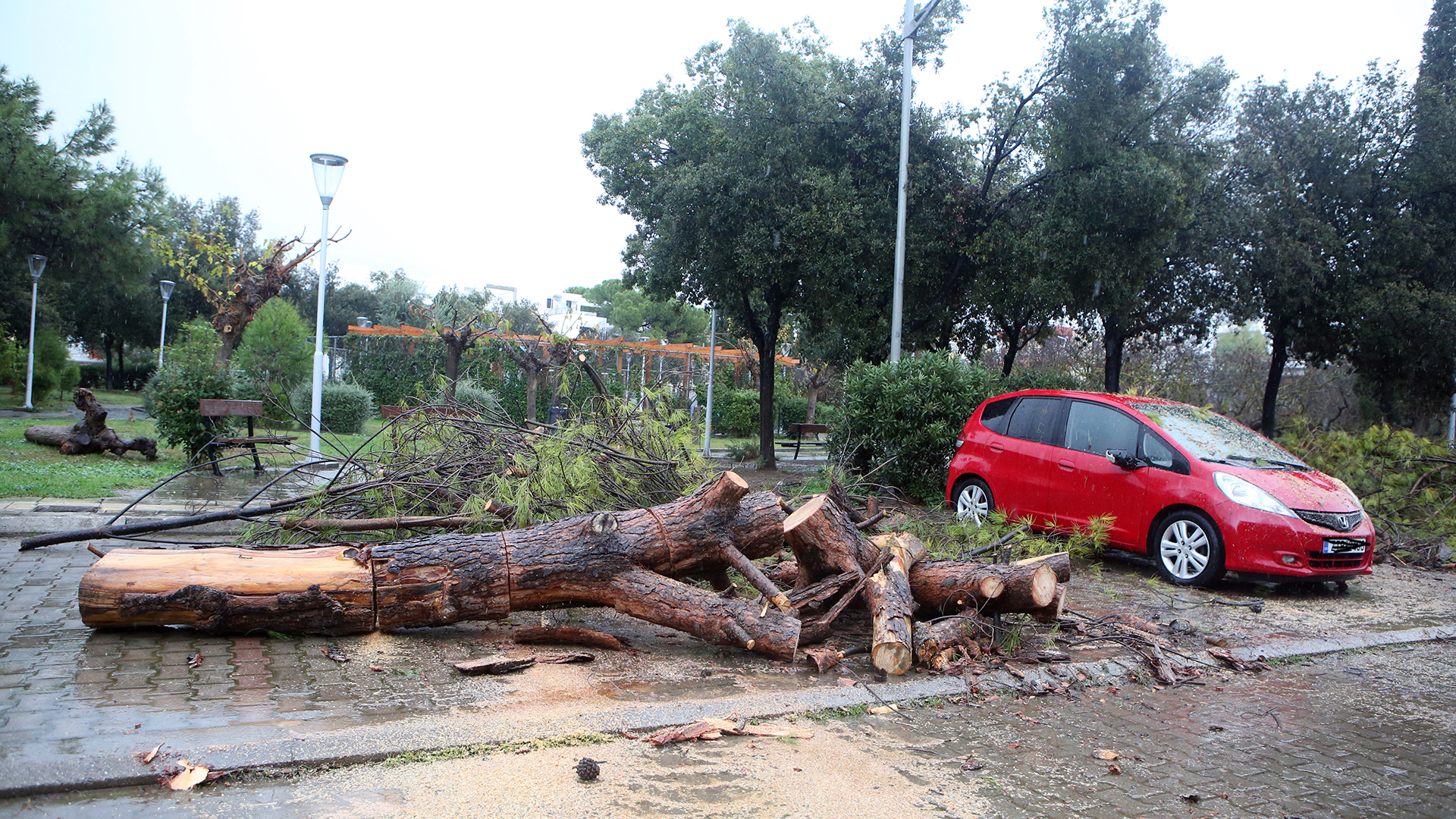Στην οδό Κοκκινάκη έπεσε ένας ευκάλυπτος, ενώ στην οδό Ελάτης έπεσε ένα πεύκο που βρισκόταν στην αυλή ενός σπιτιού, παρασύροντας ακόμα έναν πυλώνα ρεύματος και προκαλώντας υλικές ζημιές σε ένα αυτοκίνητο. Στο σημείο διεκόπη η ηλεκτροδότηση με τα αρμόδια συνεργεία να επιχειρούν για την αποκατάσταση της βλάβης.