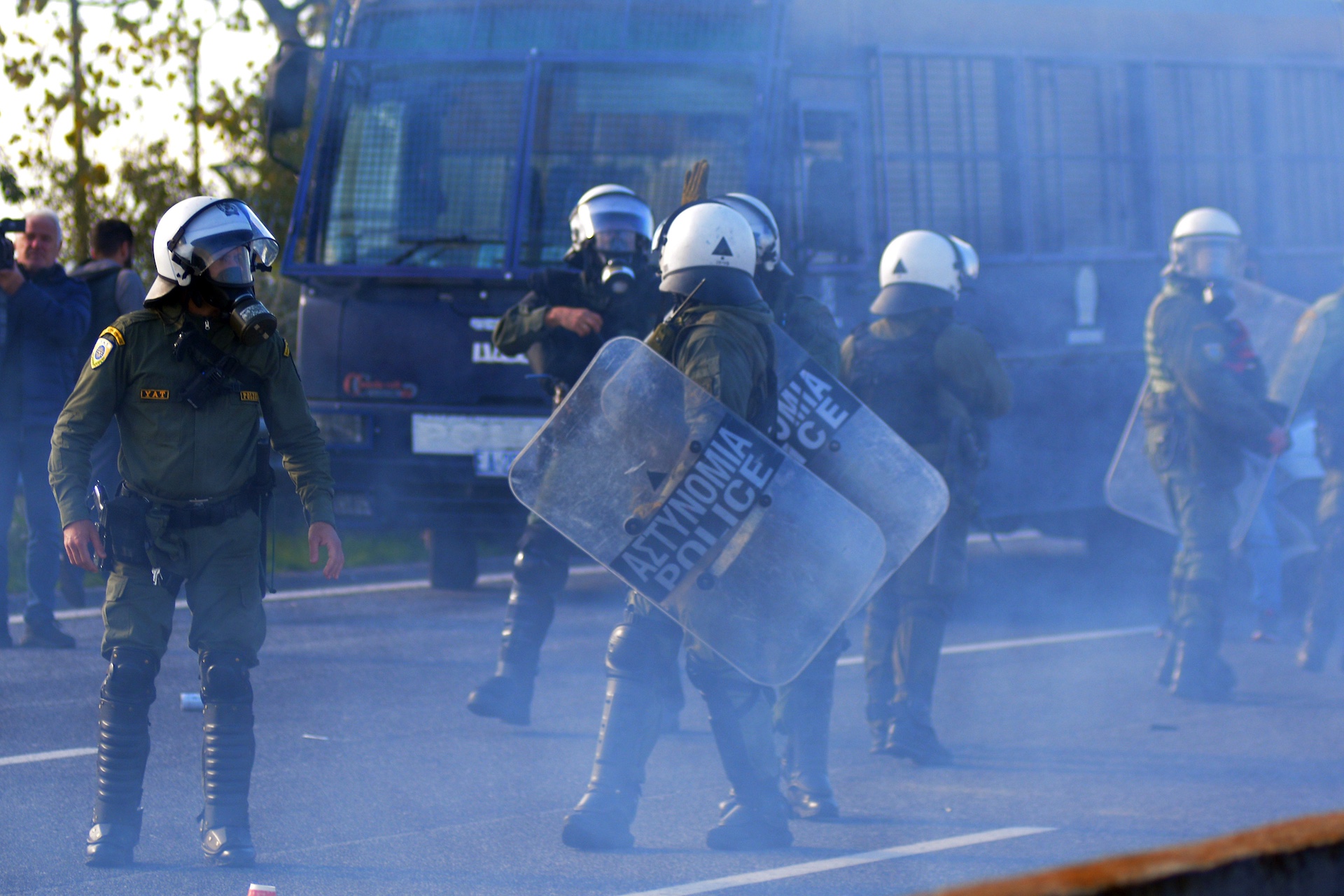 Από τις επιθέσεις τραυματίστηκαν δύο αστυνομικοί, οι οποίοι μεταφέρθηκαν στο νοσοκομείο για την παροχή πρώτων βοηθειών.