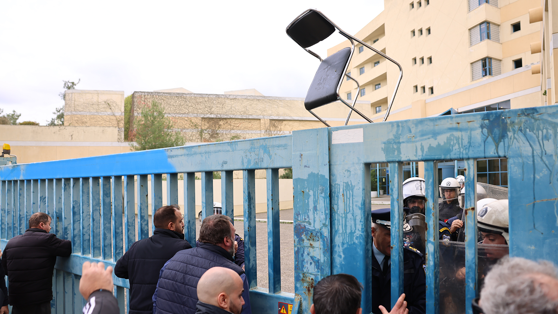 Συγκεκριμένα, λίγο πριν από τις 14.00, διαδηλωτές επιχείρησαν να μπουν ζητώντας να συνομιλήσουν με τους αρμοδίους.