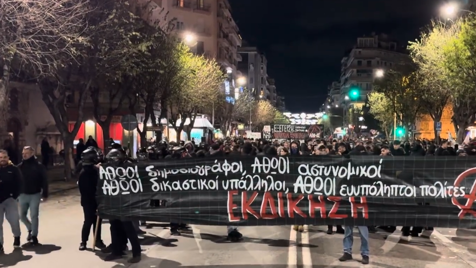 Σε εξέλιξη είναι αυτή την ώρα πορεία αντιεξουσιαστών στο κέντρο της Θεσσαλονίκης για την 17η επέτειο δολοφονίας του Αλέξανδρου Γρηγορόπουλου από τον αστυνομικό, Επαμεινώνδα Κορκονέα στα Εξάρχεια.