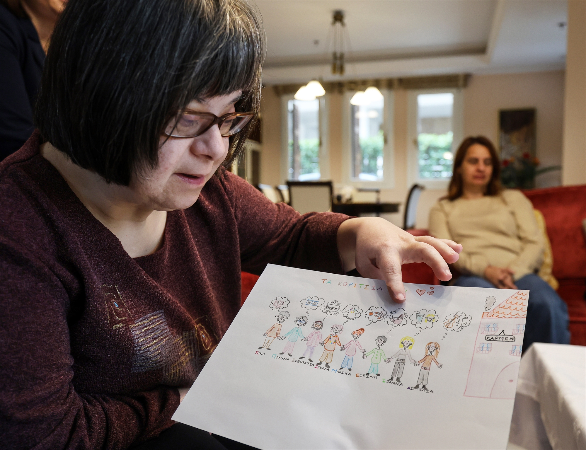 «Η αναλογία των ωφελουμένων με το προσωπικό υποστήριξης είναι τέσσερα προς ένα, επομένως δύο κυρίες βρίσκονται πάντα μαζί τους· όχι γιατί χρειάζονται φροντίδα –μια χαρά τα καταφέρνουν σε όλα– αλλά για υποστήριξη», εξηγεί στην «Κ» η κλινική ψυχολόγος Μαίρη Τσαμέτη, υπεύθυνη των Στεγών. «Τα απογεύματα έρχονται και οι λεγόμενοι εμψυχωτές: ψυχολόγοι, εργοθεραπευτές, λογοθεραπευτές, μουσικοί και άλλοι. Πρέπει να τονίσω ότι τα κορίτσια δεν βρίσκονται εδώ επειδή δεν έχουν οικογένειες, κάθε άλλο. Διατηρούν στενούς δεσμούς και σχεδόν καθημερινή επικοινωνία με τους συγγενείς τους. Συνήθως τα Σαββατοκύριακα τα περνούν στο πατρικό τους. Ομως, το σπίτι τους είναι αυτό και το νιώθουν βαθιά».