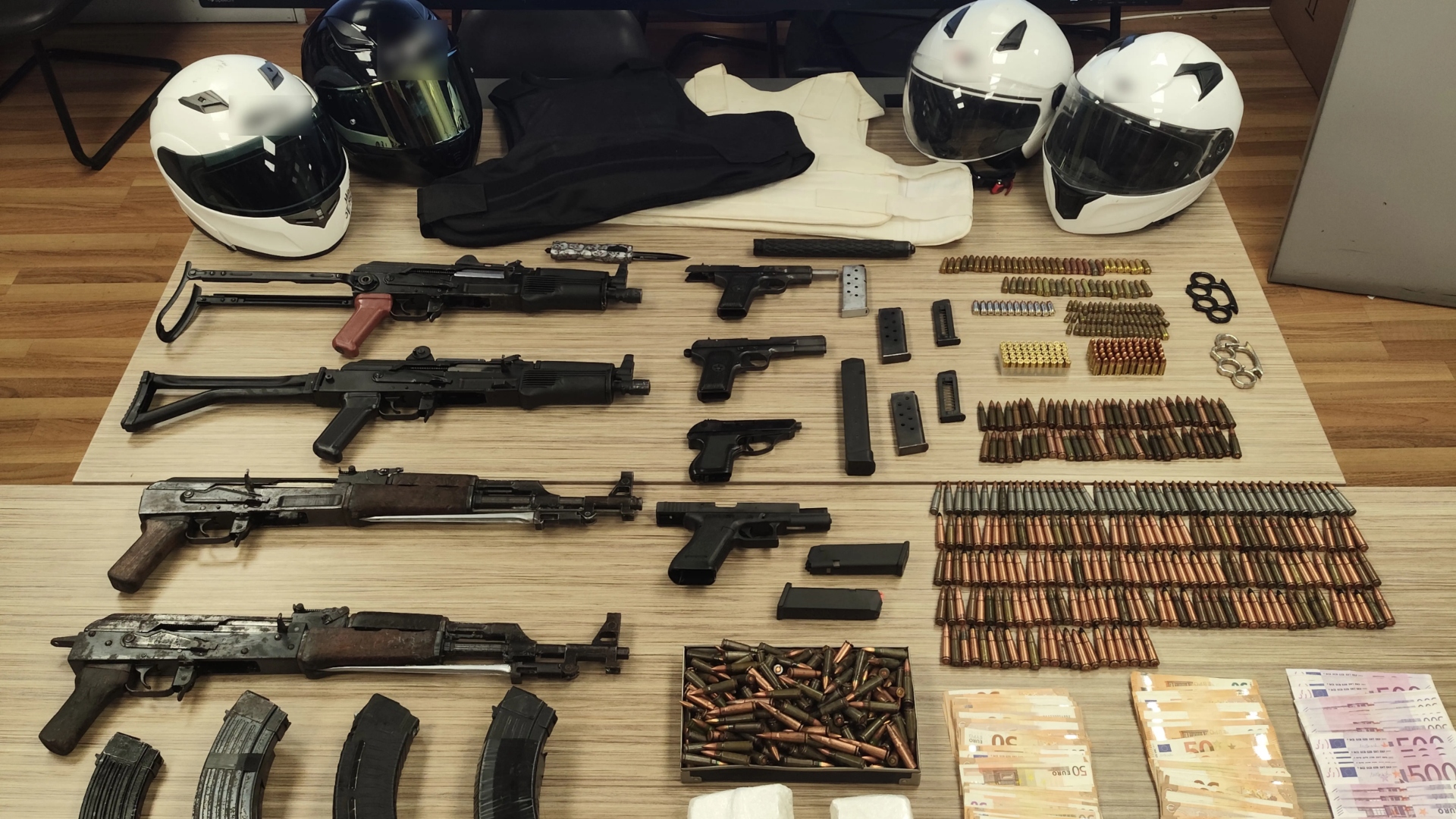 Πρόκειται για μέλη εγκληματικής οργάνωσης που βρίσκονται πίσω από εμπρησμούς, κλοπές και απόπειρες ανθρωποκτονίας. Οι Αρχές εντόπισαν μεταξύ άλλων καλάσνικοφ, πιστόλια, αλεξίσφαιρα γιλέκα, γεμιστήρες, σιδερογροθιές, στιλέτο και taser.
