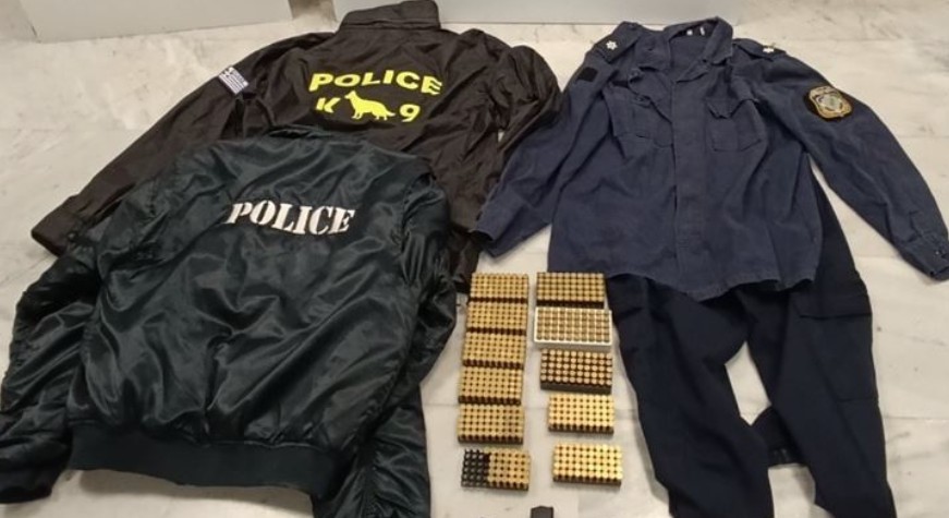 Αστυνομικοί της Υποδιεύθυνσης Δίωξης και Εξιχνίασης Εγκλημάτων Χανίων, σε συνεργασία με συναδέλφους τους, του Αστυνομικού Τμήματος Πλατανιά, πραγματοποίησαν έρευνα στην οικία του 53χρονου άνδρα, όπου βρήκαν και κατάσχεσαν 531 φυσίγγια διαφόρων διαμετρημάτων, μεταλλική ράβδο, γεμιστήρα πιστολιού, εξάρτημα γέμισης γεμιστήρα, είδη ένδυσης με διακριτικά και σήματα της Ελληνικής Αστυνομίας και του Πολεμικού Ναυτικού.