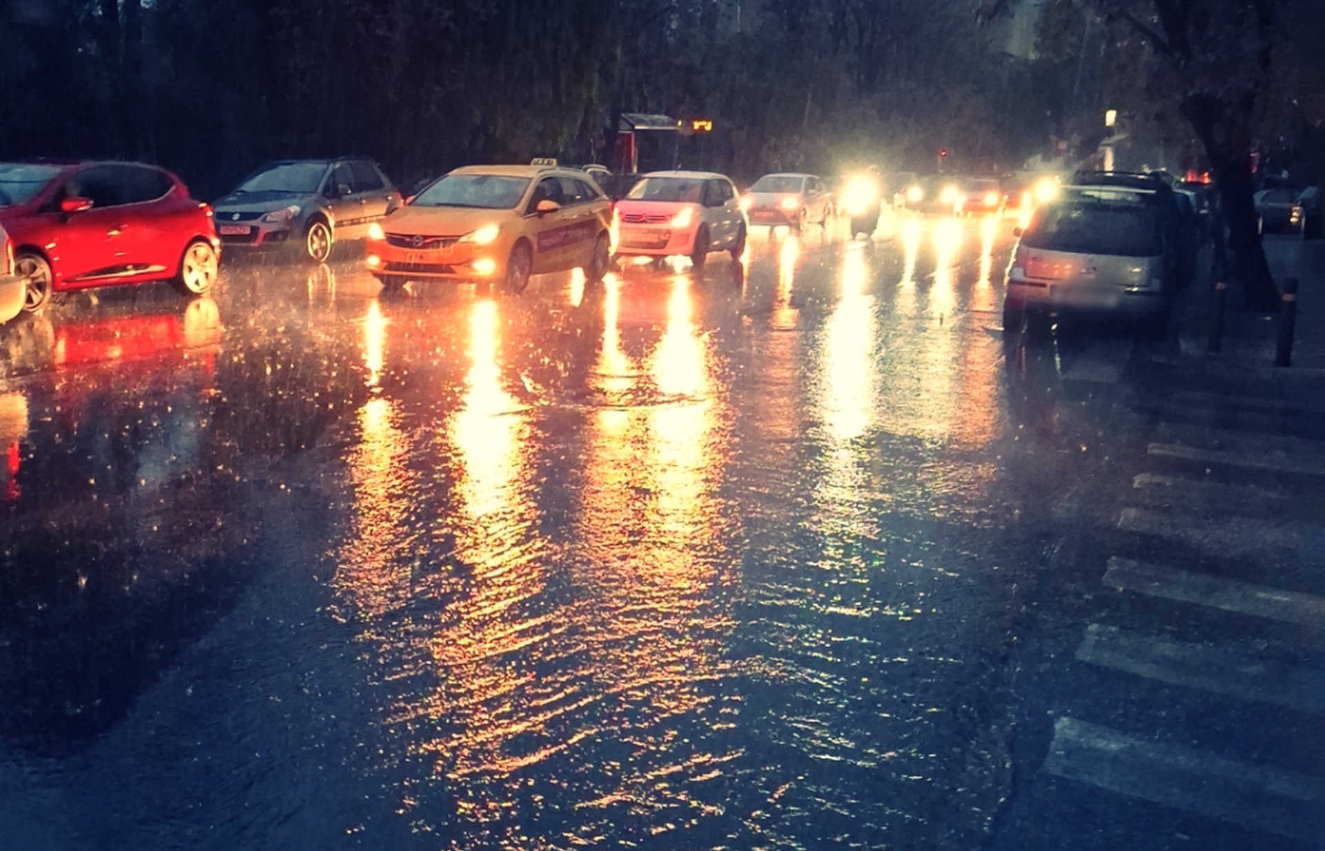 Σε αρκετούς κεντρικούς δρόμους της Αθήνας η στάθμη του νερού ανέβηκε μέσα σε λίγα λεπτά, μετατρέποντας τμήματα του οδικού δικτύου σε χειμάρρους.