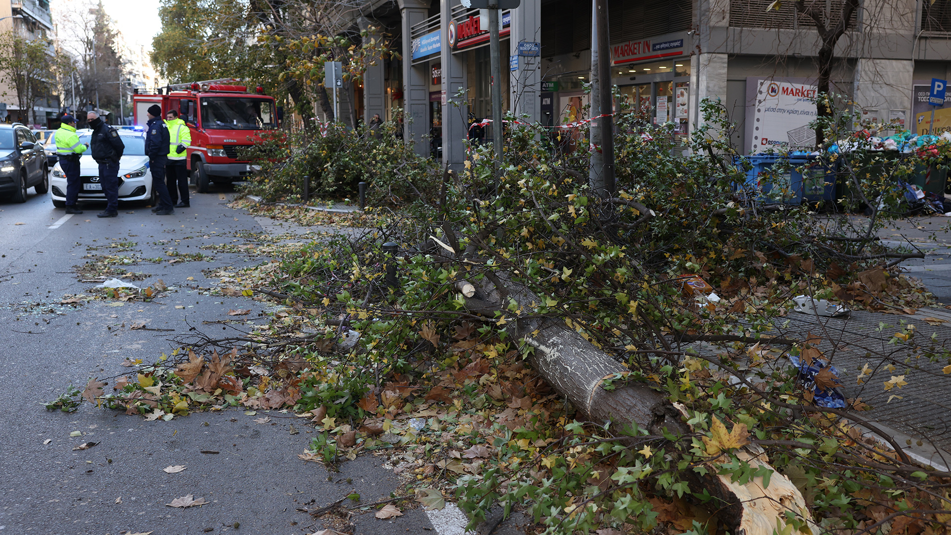 Σε ό,τι αφορά στη Θεσσαλονίκη, η Πυροσβεστική χρειάστηκε να επιχειρήσει σε 141 πτώσεις δέντρων και σε 55 αφαιρέσεις αντικειμένων, όπως για παράδειγμα τεντών, κάγκελων ή τζαμαριών που οι θυελλώδεις άνεμοι ξήλωσαν στο πέρασμά τους.