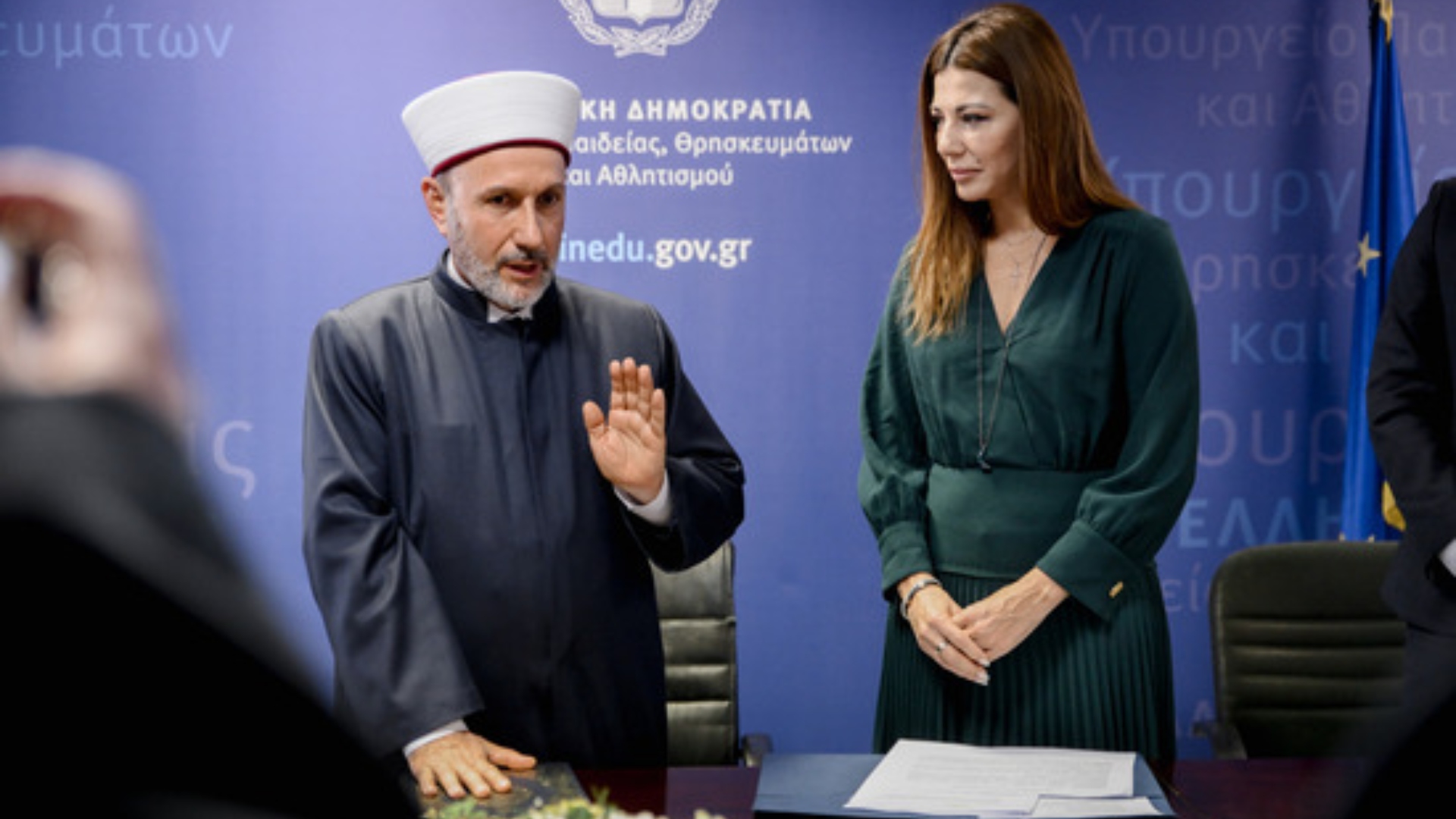 Στο υπουργείο Παιδείας πραγματοποιήθηκε σήμερα, Παρασκευή, η τελετή ορκωμοσίας του νέου μουφτή Διδυμοτείχου, κ. Εμίν Σερίφ, ενώπιον της Σοφίας Ζαχαράκη.