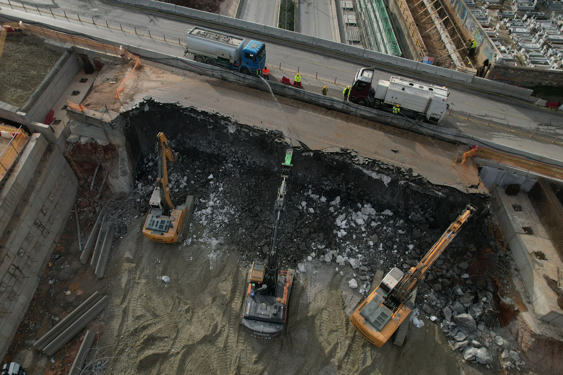 Σε πλήρη εξέλιξη είναι από τις 08:00 το πρωί του Σαββάτου οι εργασίες κατεδάφισης της γέφυρας Πανοράματος, στη Θεσσαλονίκη, στο πλαίσιο των εργασιών για το FlyΟver.