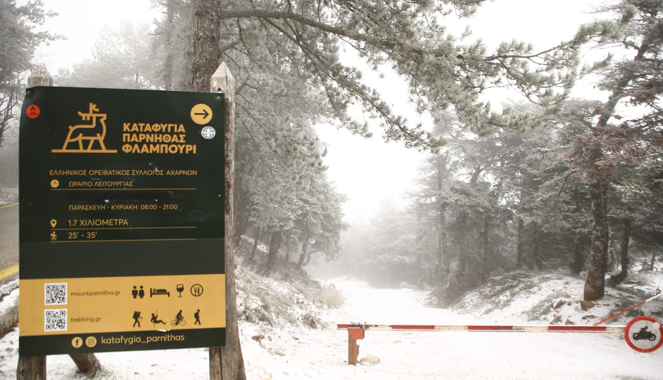 Στα λευκά ντύθηκε η Πάρνηθα, με πυκνή χιονόπτωση στα ψηλά υψόμετρα.
