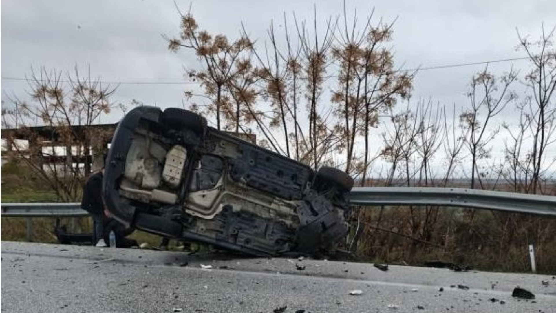 Το ένα αυτοκίνητο ντεραπάρισε και εξετράπη της πορείας του καταλήγοντας στις προστατευτικές μπάρες.