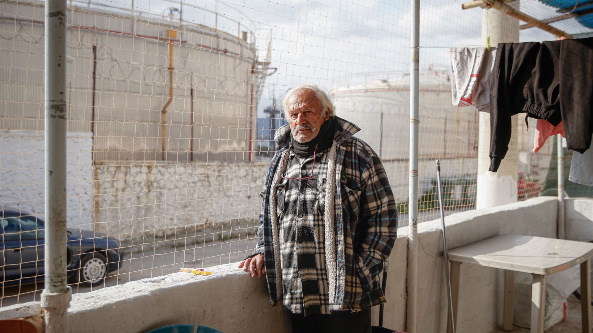 Το σπίτι του Γιώργου Τσαγκάρη χωρίζει από τη μάντρα των δεξαμενών ένας στενός δρόμος – από το μπαλκόνι του σχεδόν ακουμπά τις δεξαμενές. «Την Κυριακή πίστεψα ότι θα ανατιναχθούν. Ακούγονταν σειρήνες και χτυπούσαν οι καμπάνες. Με πήραν τα παιδιά μου και φύγαμε», είπε στην «Κ». «Ποτέ δεν ήρθε κάποιος να μας πει ότι θα κάνουμε άσκηση εκκένωσης και διαφυγής. Και στην πραγματικότητα δεν πιστεύω ότι τα «καζάνια» θα φύγουν κάποτε από εδώ».