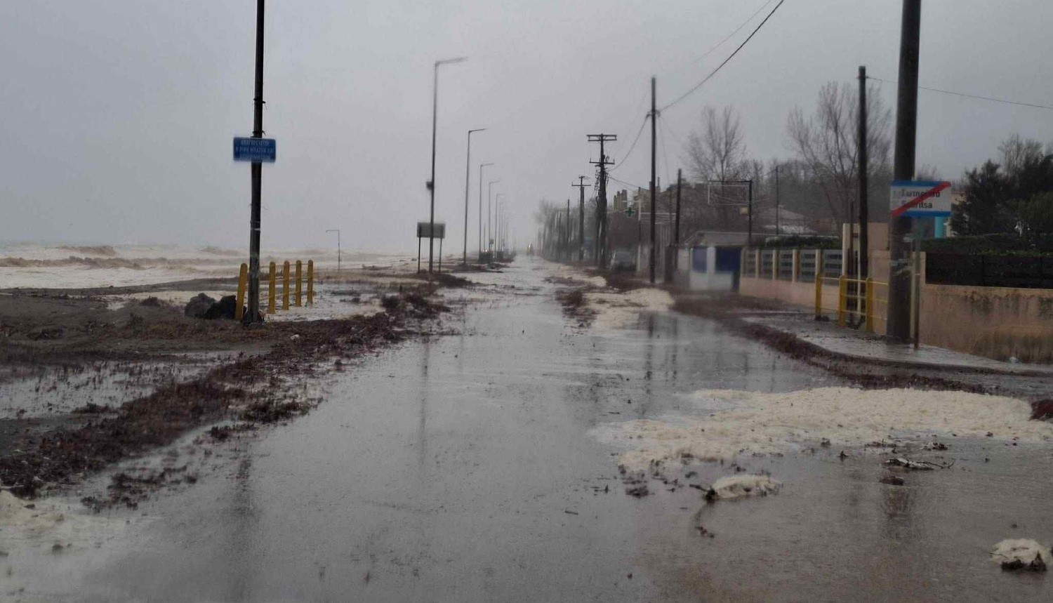 Στο ύψος της γέφυρας Καλατράβα υπερχείλισε ρέμα, με αποτέλεσμα τα νερά να καταλήξουν στην παραλιακή ζώνη που έγινε ένα με την ξηρά.Στον Αγιόκαμπο πλημμύρισαν σπίτια και ένα κατάστημα.