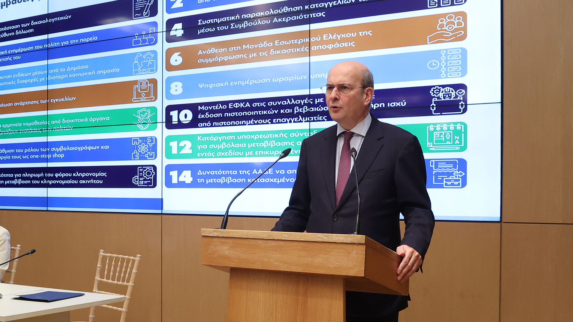 Κάθε πολίτης θα μπορεί να ενημερώνεται ψηφιακά για την πορεία της αίτησής του και θα γνωρίζει ποιος υπάλληλος έχει τον φάκελό του. Οι καταγγελίες των πολιτών θα παρακολουθούνται συστηματικά μέσω του συμβούλου ακεραιότητας, ενώ οι πολίτες θα μπορούν να παρακολουθούν την πορεία της καταγγελίας τους. Επόμενη παρέμβαση, η μη άσκηση ενδίκων μέσων από το Δημόσιο σε δικαστικές διαφορές με ιδιαίτερη κοινωνική σημασία.