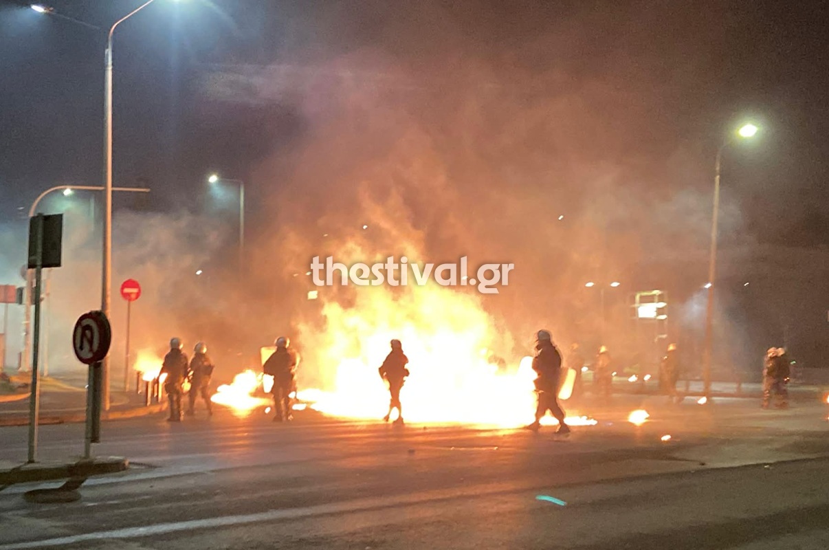 Μια δεύτερη ομάδα ατόμων που βρισκόταν εντός του πανεπιστημιακού campus εκτόξευε βόμβες μολότοφ προς τις αστυνομικές δυνάμεις που ήταν παραταγμένες στην οδό Εγνατία.