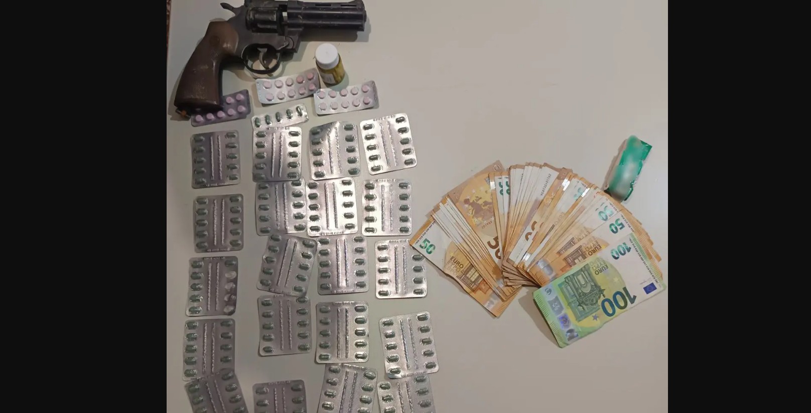 Συγκεκριμένα, κατασχέθηκαν 250 ναρκωτικά δισκία, ένα αεροβόλο πιστόλι και το χρηματικό ποσό των 3.000 ευρώ.