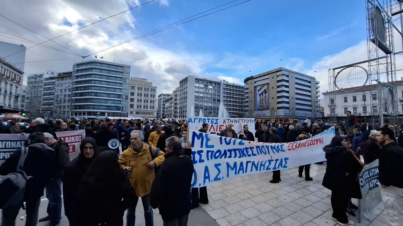 Στην πλατεία Ομονοίας έχουν συγκεντρωθεί αγρότες που έφτασαν με πούλμαν και ΙΧ.
