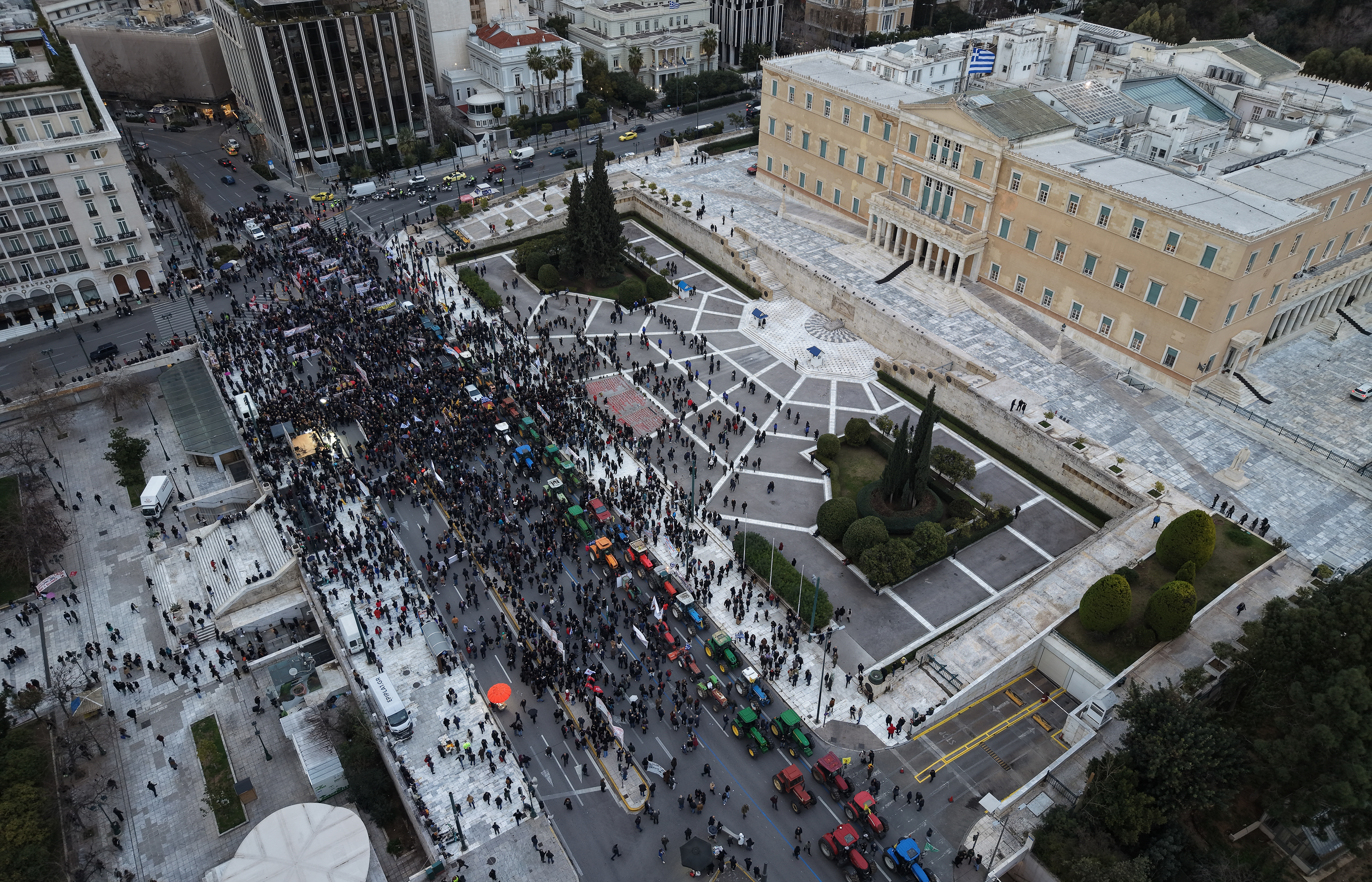 Η περιοχή πέριξ της πλατείας Συντάγματος έχει αποκλειστεί λόγω των κινητοποιήσεων των αγροτών.