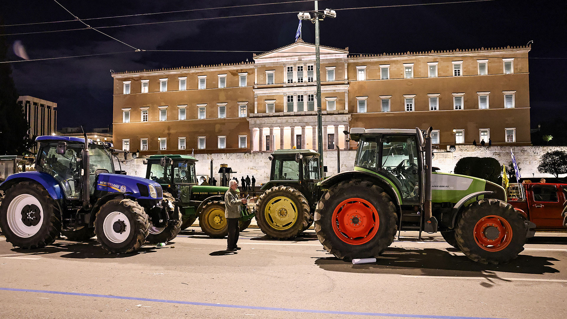 Περίπου 2.500 αγρότες συγκεντρώθηκαν έξω από τη Βουλή, ανάμεσά τους και απλοί πολίτες που διαδήλωναν κατά του νομοσχεδίου για τις συλλογικές συμβάσεις.