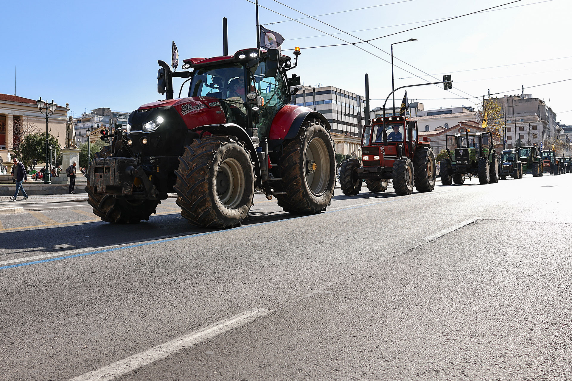 Με συντεταγμένο τρόπο και κορναρίσματα αποχώρησαν οι αγρότες με τα τρακτέρ τους από το Σύνταγμα, όπου διανυκτέρευσαν.