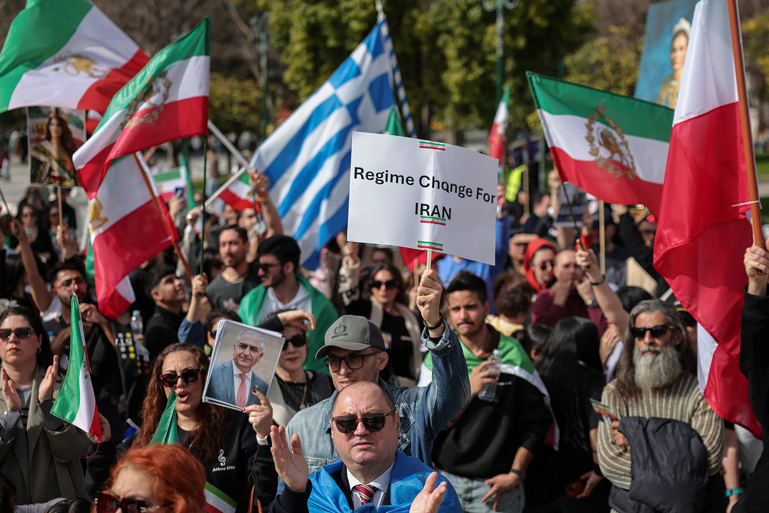 Συνθήματα κατά του καθεστώτος της Τεχεράνης και υπέρ του πρίγκιπα διαδόχου Ρεζά Παχλαβί φώναξαν Ιρανοί που ζουν στην Αθήνα, σε συγκέντρωση που πραγματοποιήθηκε στα Προπύλαια του Πανεπιστημίου.