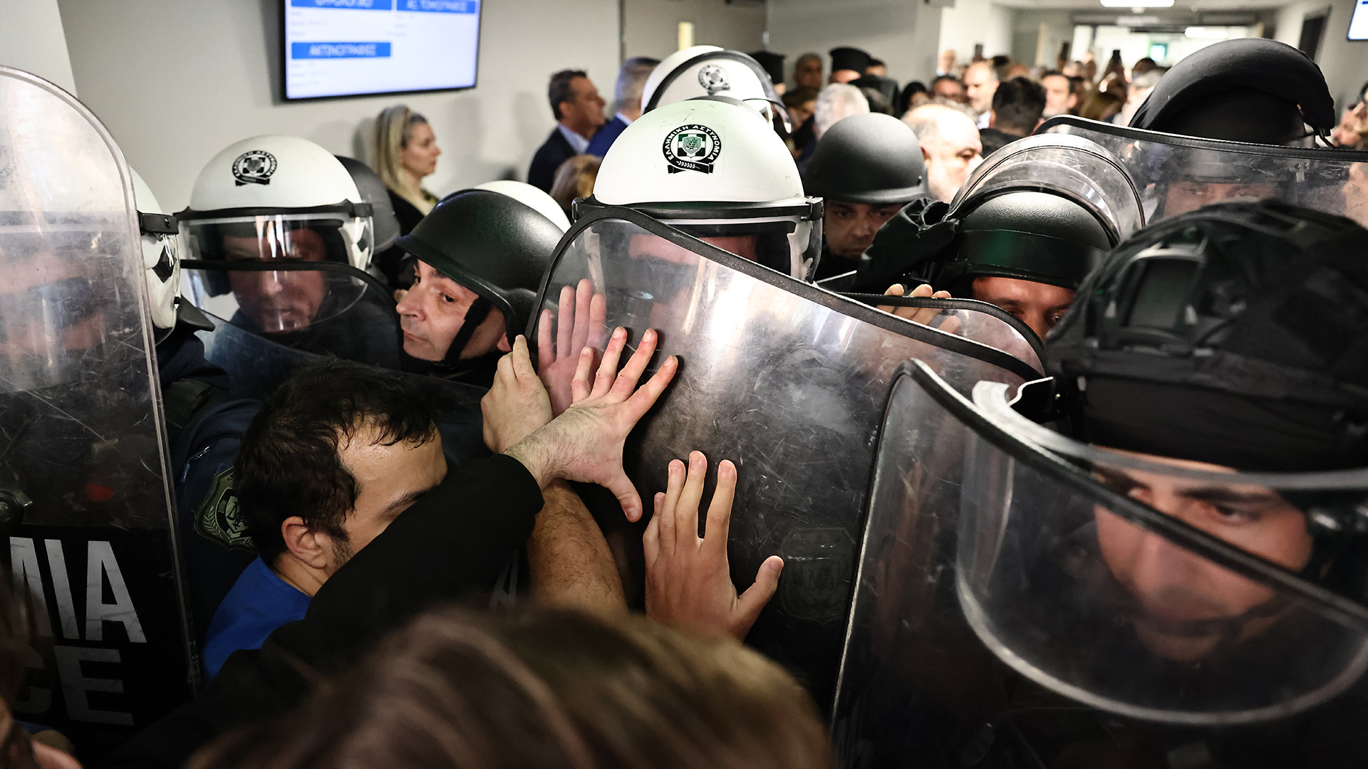 Κατά το ίδιο ρεπορτάζ, οι αστυνομικοί, χρησιμοποιώντας κράνη και ασπίδες, κατάφεραν και διέσπασαν τον κλοιό των συγκεντρωμένων, με τον κ. Γεωργιάδη να οδηγείται τελικά στο εσωτερικό του νοσοκομείου από άλλη είσοδο.