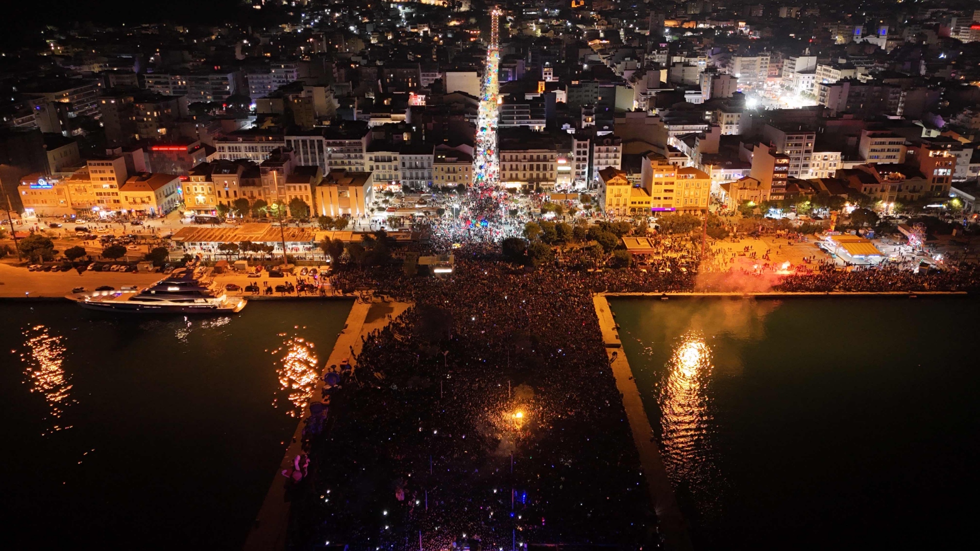 Ταυτόχρονα, ο ουρανός της Πάτρας φωτίστηκε από τα χιλιάδες πυροτεχνήματα σε μια μοναδική στιγμή με ρυθμό, και υπό τους ήχους της μουσικής.