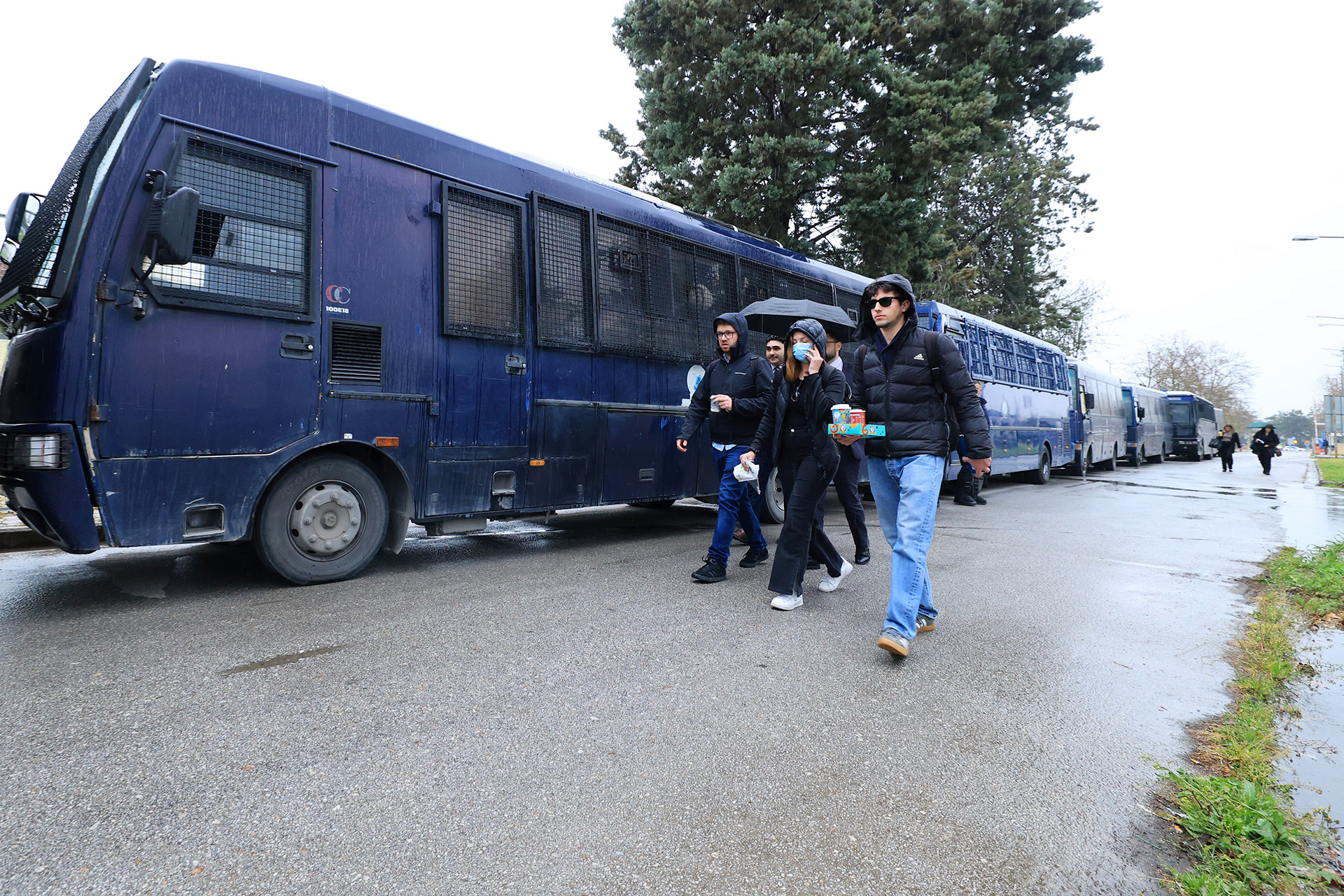 Η προσέλευση του κοινού στη δίκη πραγματοποιείται ομαλά, με σαφώς πιο οργανωμένη διαδικασία ελέγχου και διαχωρισμού των παρευρισκομένων. Ο πρώτος έλεγχος ασφαλείας διενεργείται εκτός του κτιρίου, σε ειδικά διαμορφωμένη τέντα, όπου πραγματοποιείται η αρχική ταυτοποίηση και ο απαραίτητος έλεγχος πριν από την είσοδο στον χώρο.