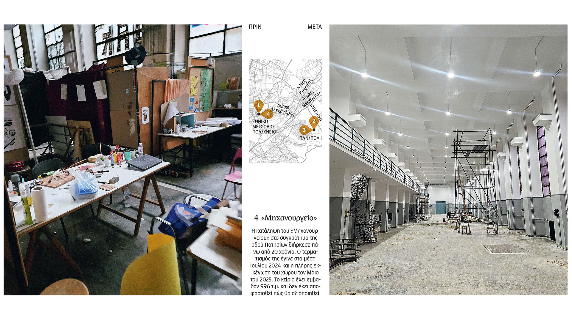 Σήμερα η «Κ» παρουσιάζει ένα «πανόραμα» των (πάλαι ποτέ) κατειλημμένων χώρων στο ιστορικό συγκρότημα της οδού Πατησίων και στην Πολυτεχνειούπολη του Ζωγράφου, οι οποίοι εκκενώθηκαν από τους καταληψίες και τις «πραμάτειες» τους και ήδη έχουν αποκατασταθεί, με τη συνολική έκτασή τους να προσεγγίζει τα 2 στρέμματα.