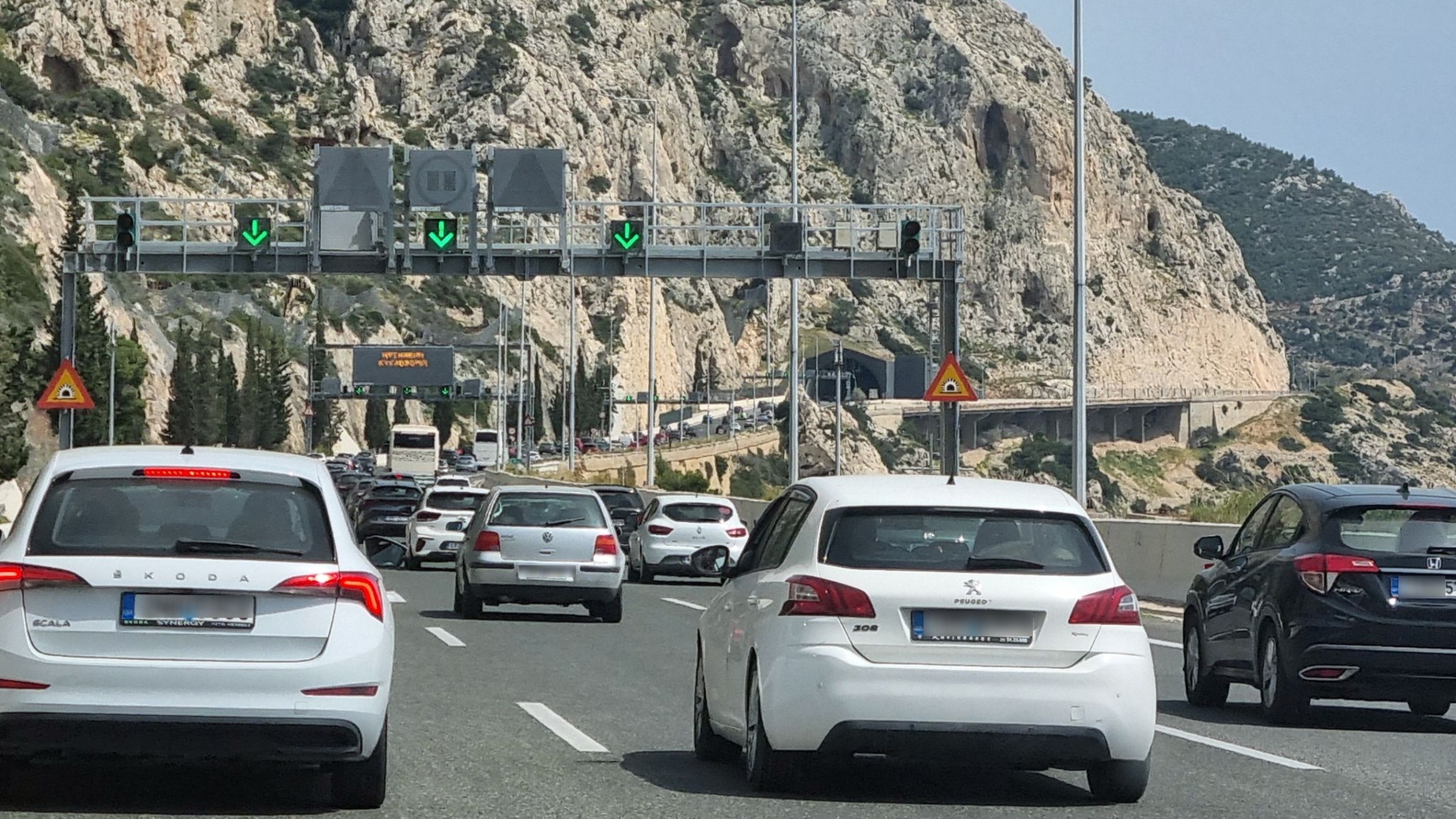 Ηδη, οι υπεύθυνοι των διοδίων έχουν ανοίξει από νωρίς το μεσημέρι τρεις φορές τις μπάρες στο ρεύμα της επιστροφής για να αποφορτιστεί ο όγκος των οχημάτων.