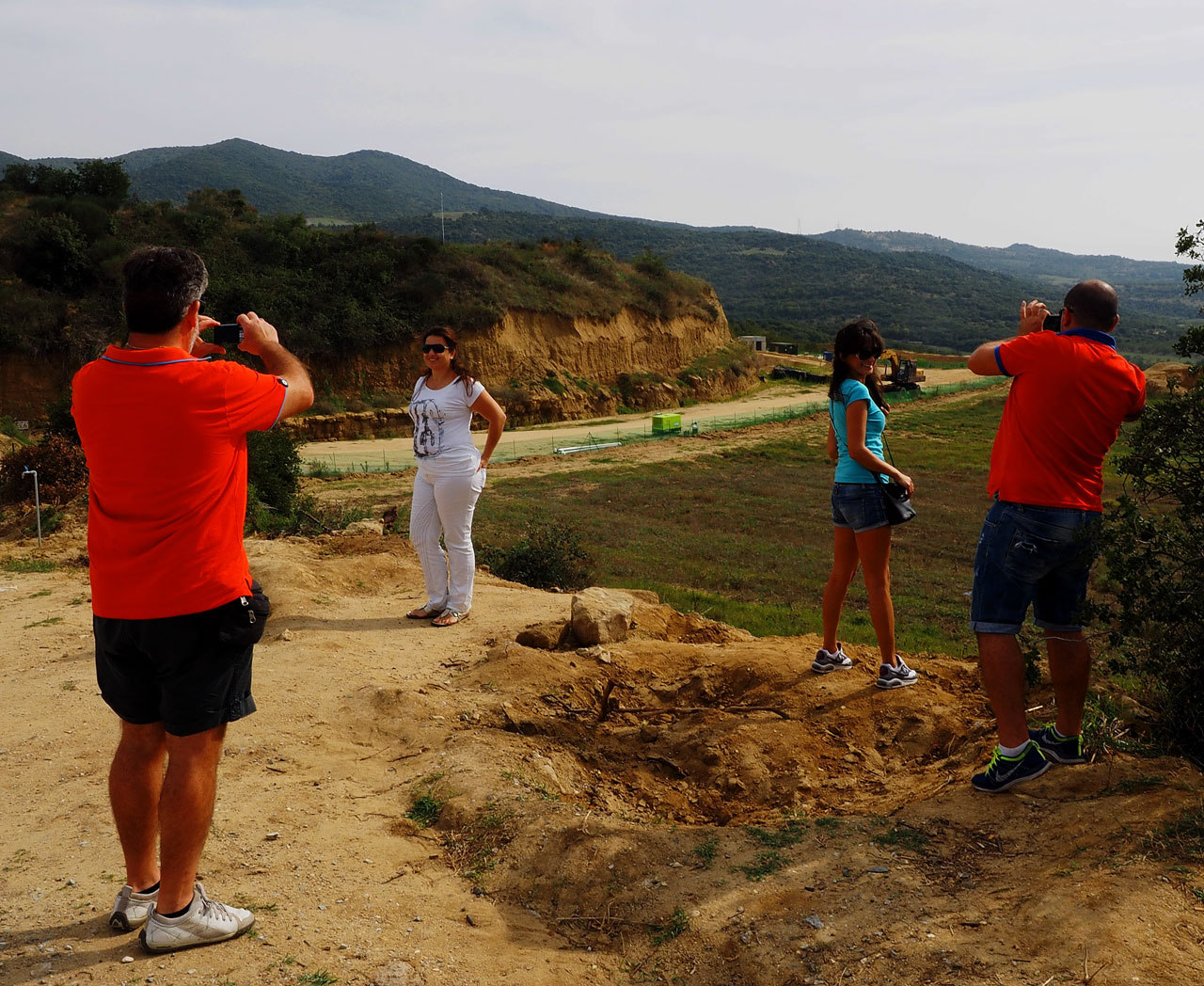 Μια ανηφόρα στη Μεσολακκιά οδηγεί στον Τύμβο. Ακολουθείς τα τόξα, αλλά βασικά ακολουθείς τα άλλα αυτοκίνητα. Στην κορυφή ατενίζουν όλοι ένα λάκκο, ένα πράσινο συρματόπλεγμα και μια μπουλντόζα -τα μόνα πράγματα που φαίνονται από εδώ- και φωτογραφίζονται. Στις αρχές 600-800 αυτοκίνητα έρχονταν κάθε μέρα, τώρα καμιά διακοσαριά, ειδικά τα σαββατοκύριακα, κυρίως από βόρεια Ελλάδα και Βουλγαρία. Ο κ. Κώστας που έχει σπίτι πάνω στο δρόμο για την ανασκαφή ήταν ο πρώτος που εκμεταλλεύτηκε την συγκυρία. Εστησε έναν πάγκο και ξεπούλησε τα φασόλια και τα ρεβύθια του στους διερχόμενους.
