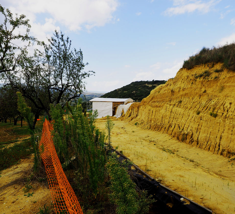 Την επόμενη μέρα με τη βοήθεια ενός ντόπιου, κρυβόμαστε ανάμεσα στα αμπέλια και βλέπουμε την μπροστινή πλευρά από απόσταση αναπνοής. Ασαφείς συνομιλίες ακούγονται, μηχανήματα δουλεύουν, η μεγάλη τέντα κρύβει τη θέα προς ο,τιδήποτε ενδιαφέρον. Είμαστε όμως κοντά. Και αυτό από μόνο του μοιάζει σημαντικό.