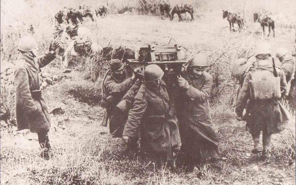 Από τα οπλοπολυβόλα, πρέπει να ξεχωρίσει κανείς το τσεχοσλοβακικό Χότσκις που υπερτερούσε των ιταλικών Φίατ και Μπρέντα, καθώς δεν θερμαινόταν ιδιαίτερα, και σπάνια πάθαινε εμπλοκή. Ηταν επίσης πολύ ελαφρύ (7 κιλά), χάρη και σε μετατροπές που είχε κάνει ο στρατός σε αυτό, κι έτσι μεταφερόταν ευκολότερα στις μακρές πορείες πάνω στα αλβανικά βουνά. Οπλο ιδανικό και για άμυνα αλλά και για επίθεση με πυρ και κίνηση, έσπερνε τον πανικό στις αντίπαλες γραμμές, καθώς ο χειριστής του μπορούσε να εκτελέσει βολή «εν βαδίσματι», με τον βοηθό του να τον ακολουθεί δύο βήματα πιο πίσω κρατώντας τις δεσμίδες. Ηταν μια άσκηση που την επαναλάμβαναν οι κληρωτοί μέχρι να ματώσουν στην εκπαίδευση, και αποδείχτηκε ιδιαίτερα αποτελεσματική, αφού άνοιγε τον δρόμο στην υπόλοιπη διμοιρία που ακολουθούσε στην εκάστοτε έφοδο, με τη γνωστή εφ’ όπλου λόγχη. Πρόκειται για εικόνες που έχουν αποτυπωθεί πολύ ζωντανά στους γνωστούς ζωγραφικούς πίνακες του Αλέξανδρου Αλεξανδράκη (με τις προελάσεις των Ελλήνων στρατιωτών) – δεκανέας πολυβολητής άλλωστε ήταν και ο ίδιος. Παρόμοια ενεργούσε και το πολύ καλό ιππικό, το οποίο ελισσόταν εφίππως αλλά μαχόταν πεζή. Πολύ αξιόπιστο και ανώτερο του αντίστοιχου ιταλικού ήταν και το αυστριακό τυφέκιο Μάλινχερ που έφεραν οι απλοί οπλίτες. Μάλιστα, επειδή το Μάλινχερ ήταν αρκετά μακρύτερο από το ιταλικό τυφέκιο, όταν έφερε πάνω του τη λόγχη υπερτερούσε στη μάχη σώμα με σώμα, στην οποία οι Ελληνες στρατιώτες κέρδιζαν κατά κράτος, όπως πολλές χιλιάδες χρόνια νωρίτερα οι Μακεδόνες με τη θρυλική σάρισα. Απλές τεχνικές μάχης αλλά που αποδείχτηκαν φοβερά αποτελεσματικές στον χώρο της Πίνδου.