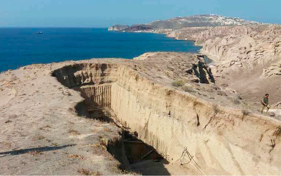 Τα τελευταία χρόνια, τέσσερις ξενοδοχειακές μονάδες ξεκίνησαν να δημιουργούνται στην περιοχή. Μετά, άρχισαν οι παρανομίες. Πλέον, η κατάσταση δείχνει να ξεφεύγει από τον έλεγχο. Σύμφωνα με καταγγελίες συλλόγων και φορέων του νησιού, από τον περασμένο Αύγουστο μια εταιρεία ξεκίνησε παράνομες εργασίες σχεδόν στην άκρη του γκρεμού, για να ανεγείρει υπόσκαφο ξενοδοχείο: εξ ολοκλήρου αυθαίρετο. Κλιμάκιο της ΔΟΥ και του ΙΚΑ που πραγματοποίησε αυτοψία στην περιοχή, διαπίστωσε ότι είχε ανεγερθεί ένα υπόσκαφο κτίσμα 250 τ.μ., με ολοκληρωμένο τον φέροντα οργανισμό και ανοίγματα στην πρόσοψη του γεωλογικού σχηματισμού προκειμένου να δοθεί θέα στην παραλία. «Περιττό να αναφερθεί ότι ουδεμία γεωλογική μελέτη δεν έχει υλοποιηθεί για τη συγκεκριμένη κατασκευή, άρα είναι άγνωστες οι επιπτώσεις που θα είχε η κατάρρευση τμήματος των ηφαιστειακών σχηματισμών», αναφέρουν σε κοινή τους ανακοίνωση οκτώ τουριστικοί και πολιτιστικοί σύλλογοι του νησιού.