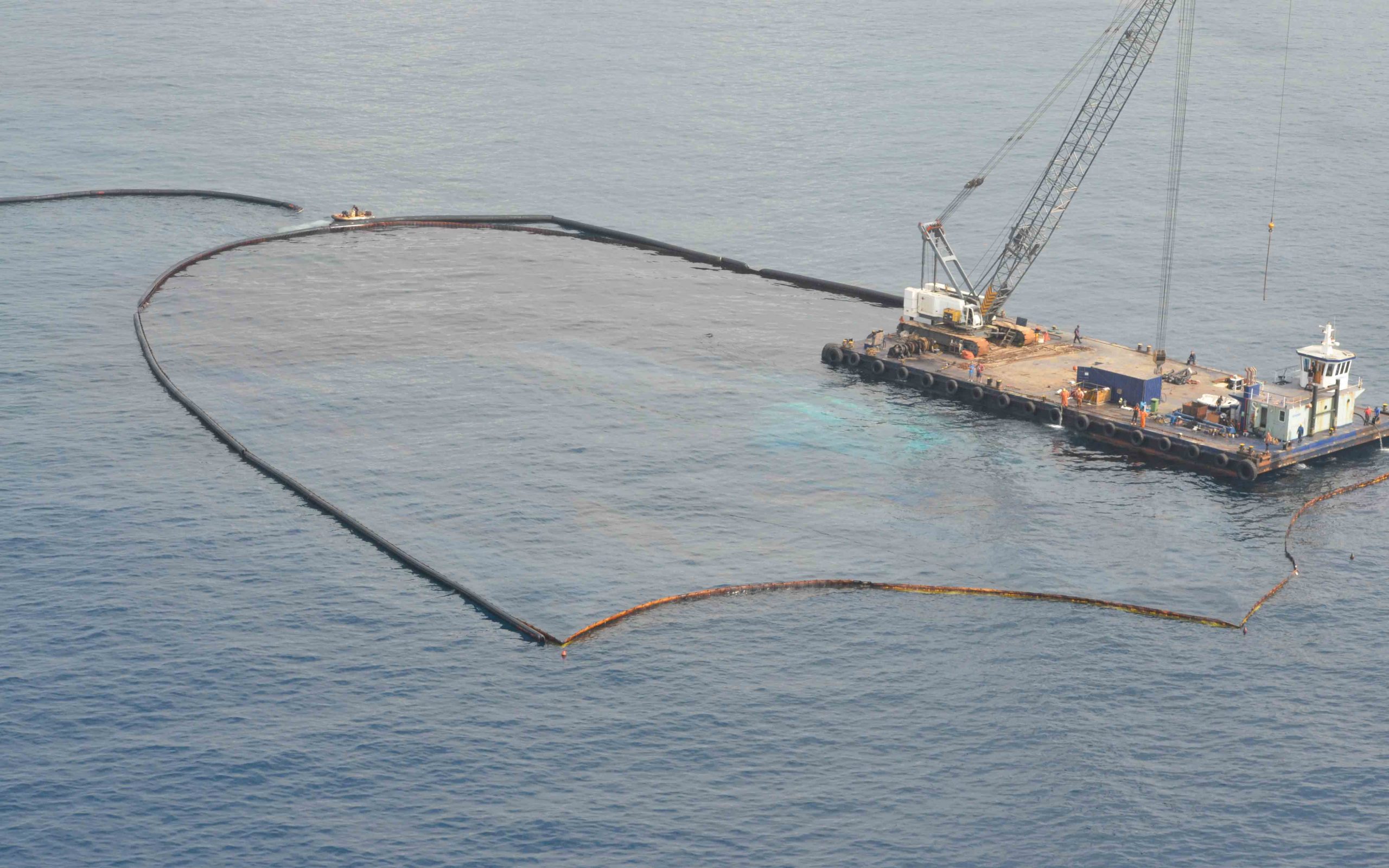 Να σημειωθεί ότι στο σημείο έχουν ποντιστεί πλωτά φράγματα, ενώ η όλη επιχείρηση επιτηρείται από δύο σκάφη του λιμενικού σώματος.