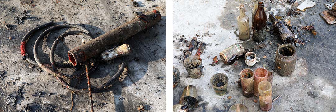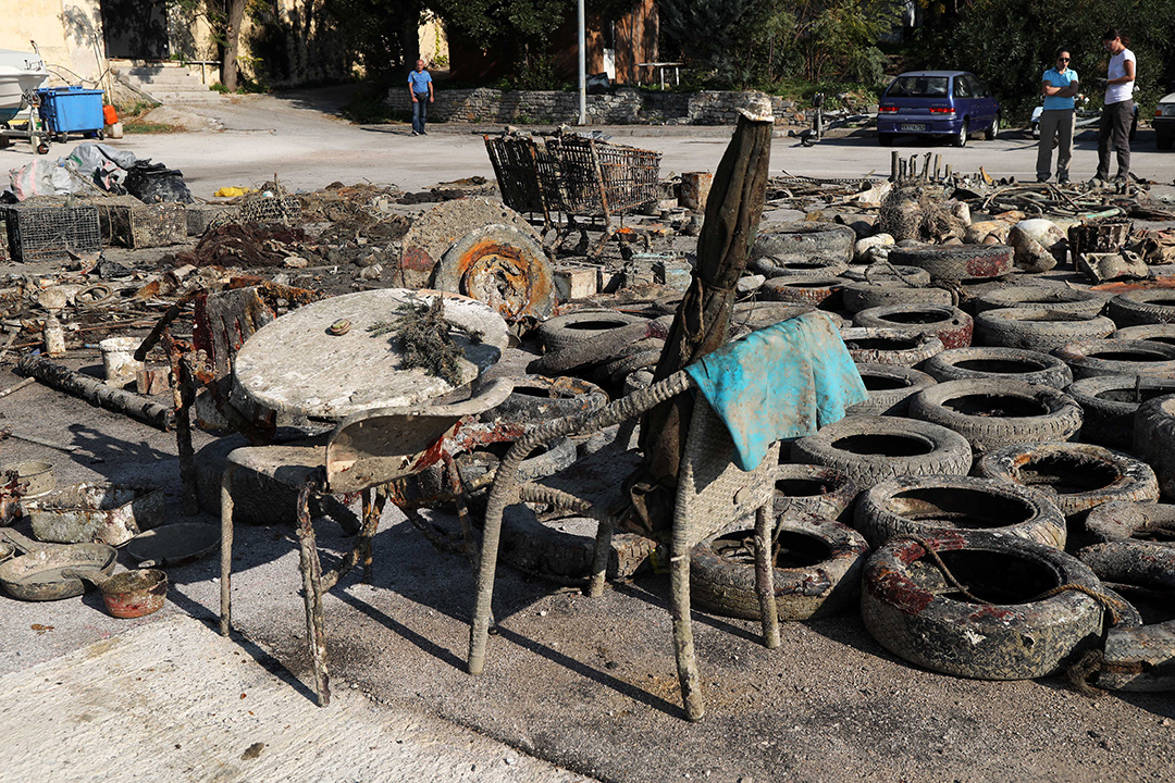 Το θέαμα είναι αποκαρδιωτικό. Οι δώδεκα δύτες που βρίσκονται μέσα στο νερό βγάζουν κάθε τόσο στην επιφάνεια και κάτι καινούργιο: δεκάδες λάστιχα, κομμάτια σωλήνων, αντλίες, ποτήρια, μπουκάλια, παπούτσια, καρέκλες, τραπέζια, καρότσια σούπερ μάρκετ, τεράστια κομμάτια πλαστικών δαπέδων, νιπτήρες, ηλεκτρικά σίδερα, κασετόφωνα, μπετόνια, αντλίες. Όλα μοιάζουν σαν να έχουν βγει από ναυάγιο, καθώς έχουν καλυφθεί με ένα γκρι στρώμα μικροοργανισμών που έχει «σβήσει» τις γωνίες τους. Κάποιες ηλεκτρικές συσκευές ή σιδερένια σκεύη, ξεκάθαρα αντικείμενα προηγουμένων δεκαετιών, «μαρτυρούν» τον χρόνο παραμονής τους στον βυθό.