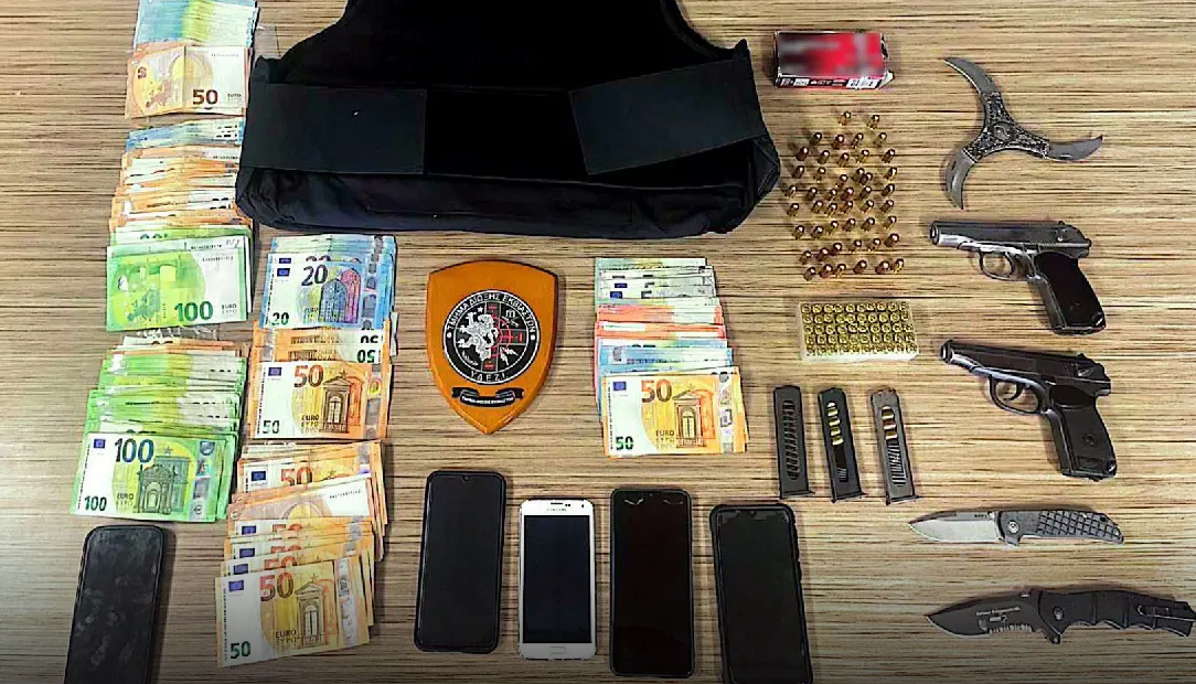 Από τις έρευνες που πραγματοποιήθηκαν συνολικά βρέθηκαν πάνω στους συλληφθέντες ή στις οικίες τους και κατασχέθηκαν πιστόλια, αλεξίσφαιρο, αναδιπλούμενα μαχαίρια, πλήθος φυσιγγίων, δύο μοτοσικλέτες και ένα αυτοκίνητο, κινητά καθώς και πάνω από 30.000 ευρώ.