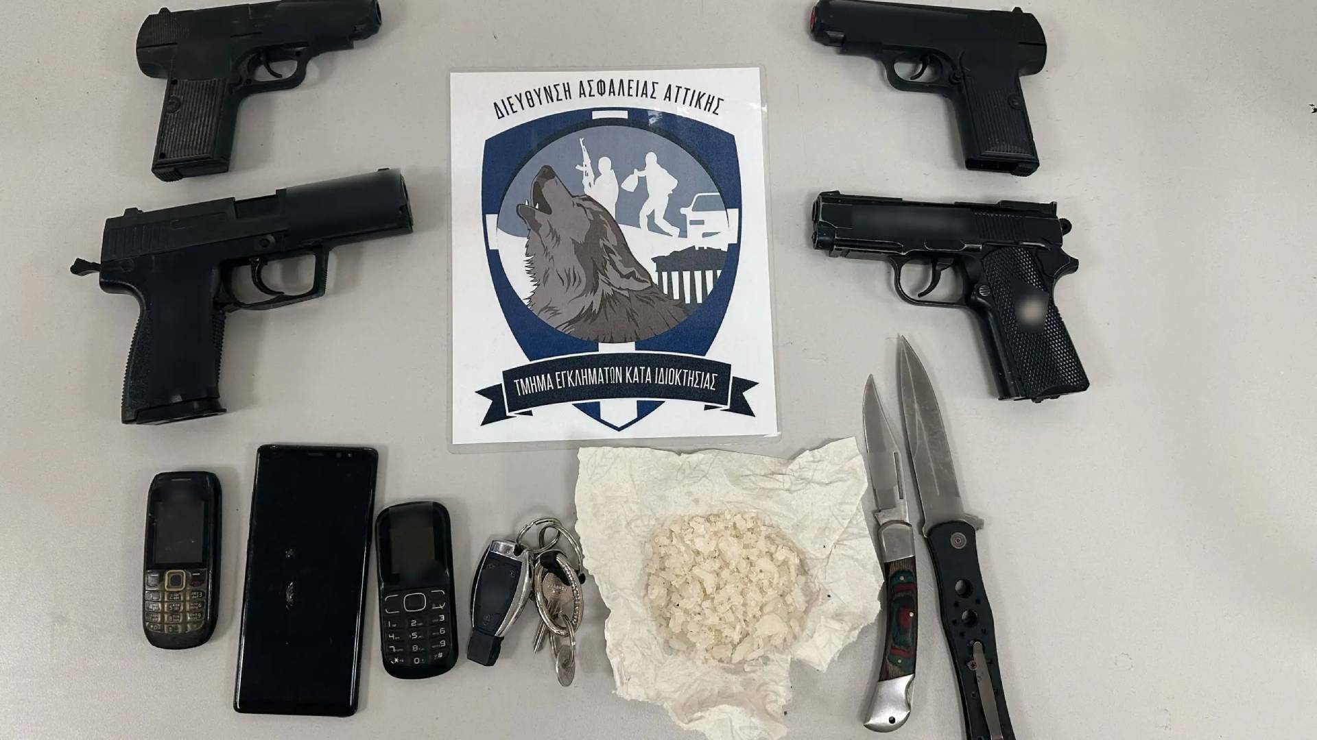Οι συλληφθέντες είναι δύο αλλοδαποί 39 και 30 ετών καθώς και ένας 60χρονος ημεδαπός, σε βάρος των οποίων σχηματίστηκε δικογραφία για –κατά περίπτωση- σύσταση συμμορίας, ληστείες και διακεκριμένες κλοπές κατά συναυτουργία και κατ’ εξακολούθηση και απόπειρες αυτών, απείθεια και παράβαση των νόμων περί όπλων και ναρκωτικών.