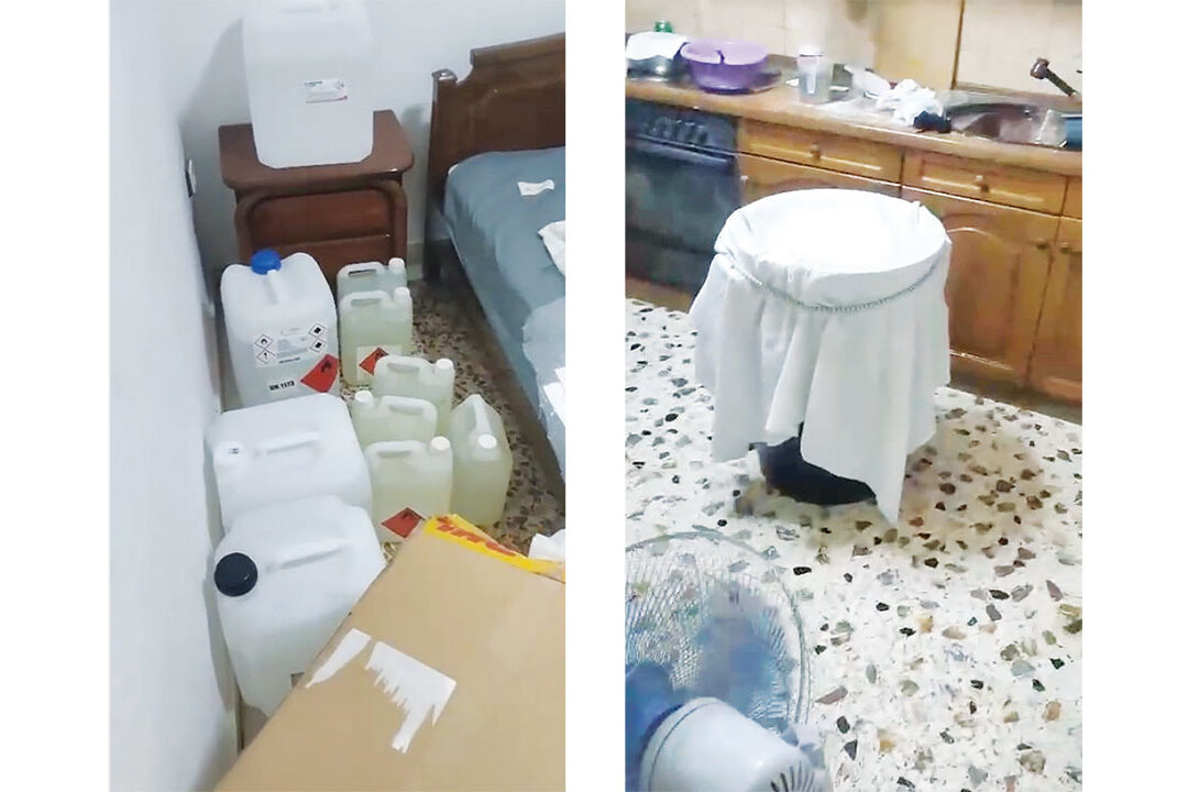 Στο εσωτερικό του διαμερίσματος βρέθηκε όλος ο απαραίτητος εξοπλισμός, όπως επίσης χημικοί διαλύτες και άγνωστη σκόνη για τη νόθευση της κοκαΐνης μετά τον διαχωρισμό της από τα ρούχα.